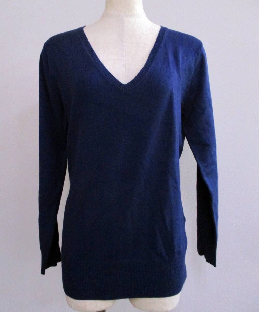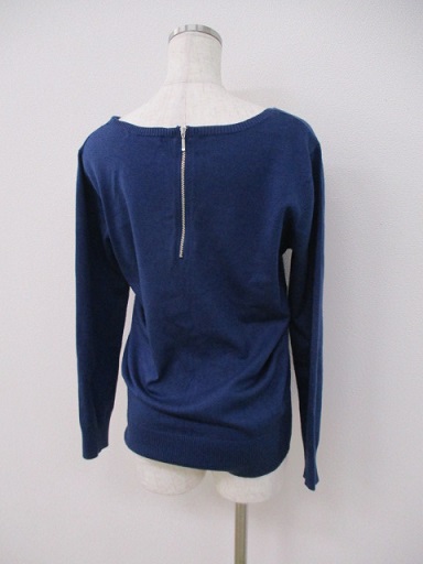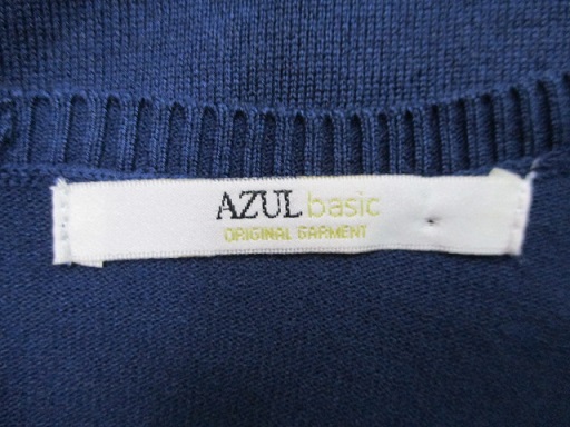 1221【送料無料】AZUL basic アズール ベーシック レディース トップス 長袖 ニット 深Vネック S ネイビー 薄手 バックファスナー 着回し◎