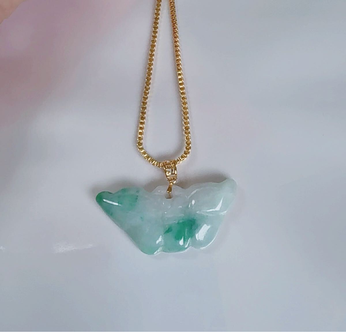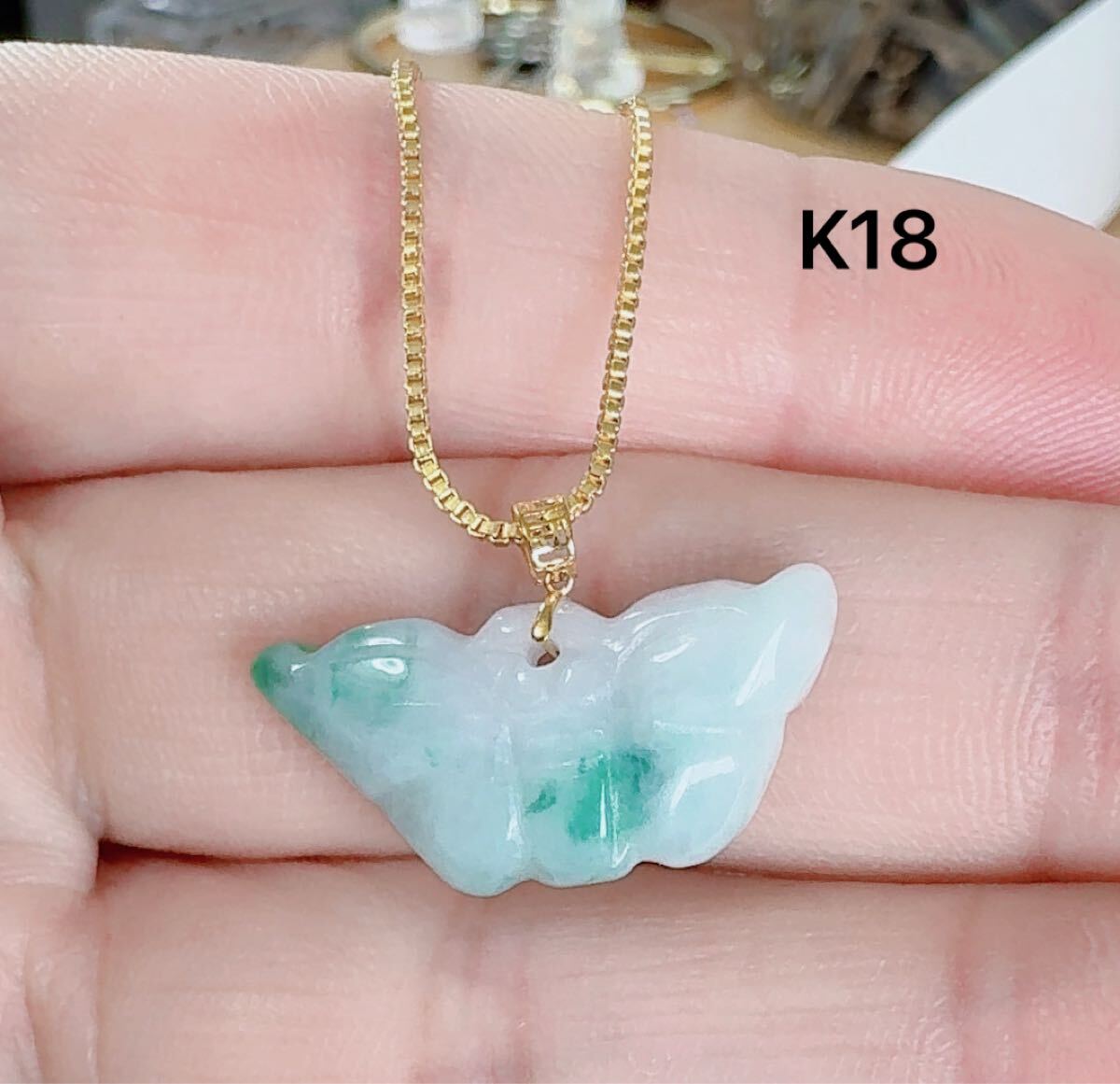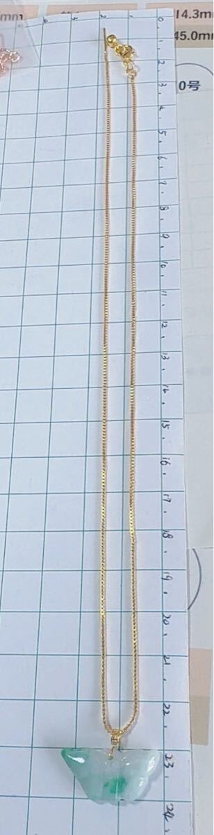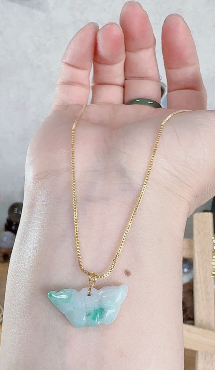 R2-01119天然本翡翠《本物保証》白緑翡翠 蝶々様“ 蝴蝶”ミャンマー産 ペンダント K18 一点物 希少 縁起物 お守り パワーストーン 画像通りチェーン付きS925 約45cm