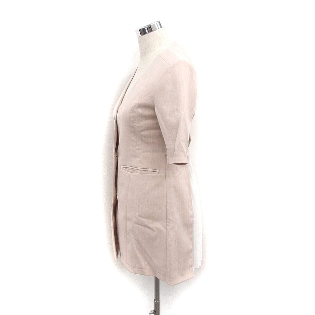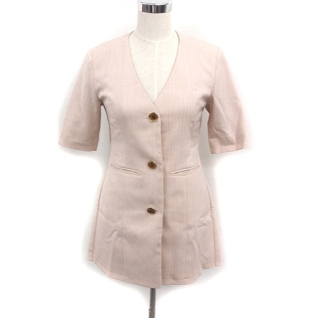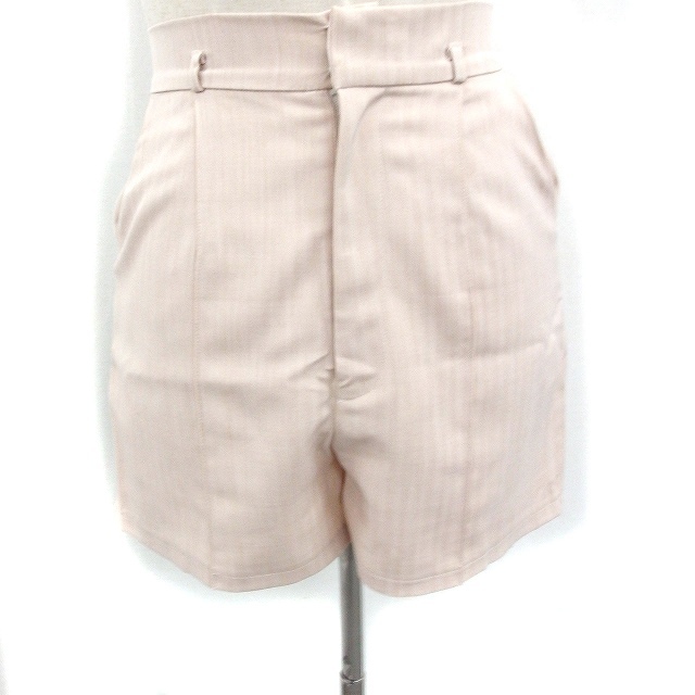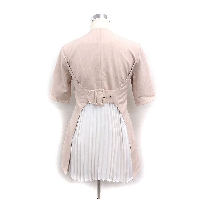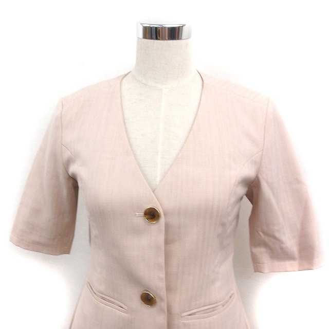レディアゼル REDYAZEL パンツスーツ ノーカラー 五分袖 ジャケット & ショートパンツ 切替プリーツ S ピンクベージュ /FT11 レディース