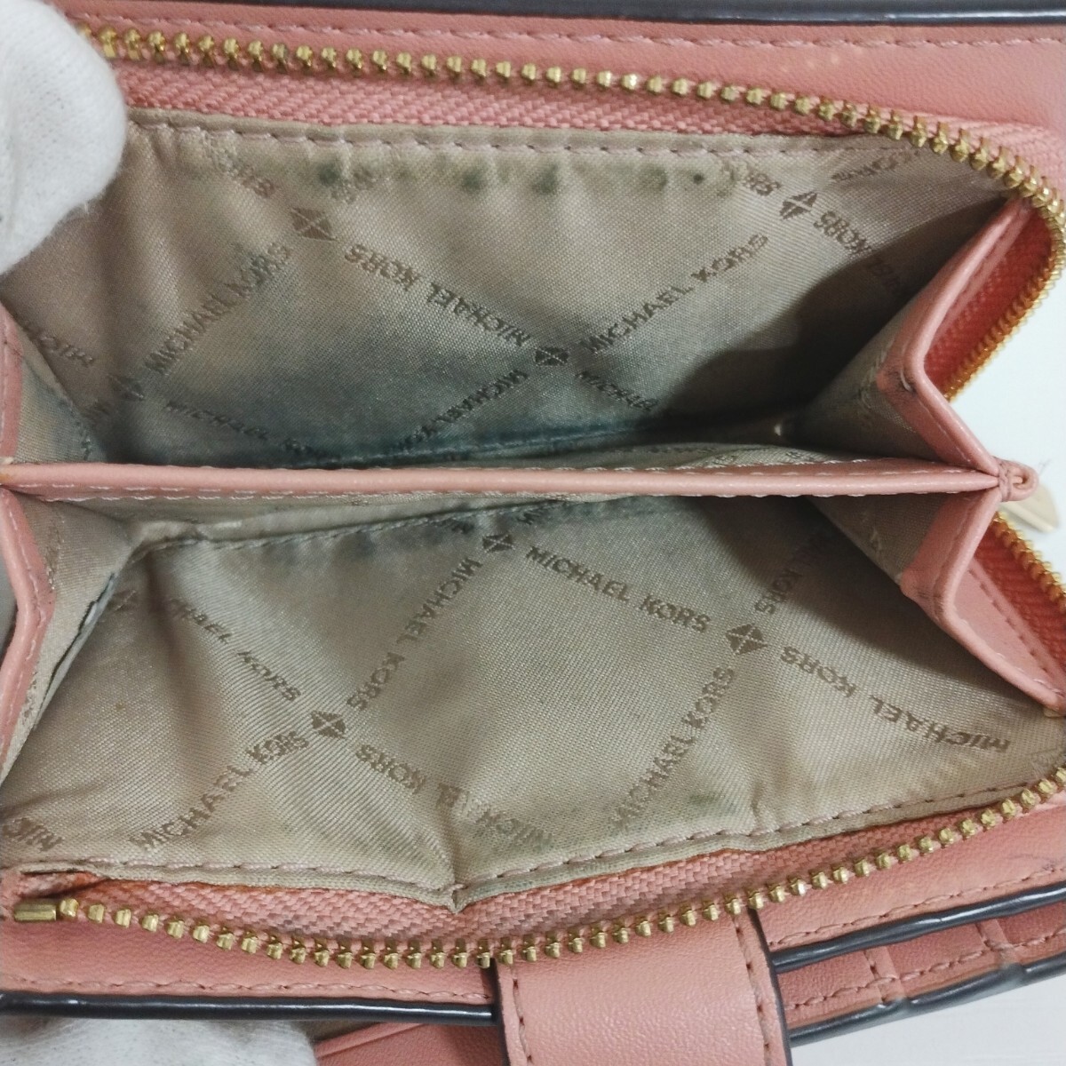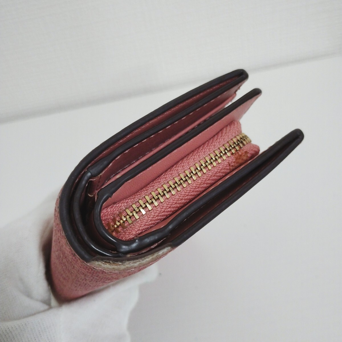 小銭入れに使用感やファスナーの金具部分に色落ちもあります。
