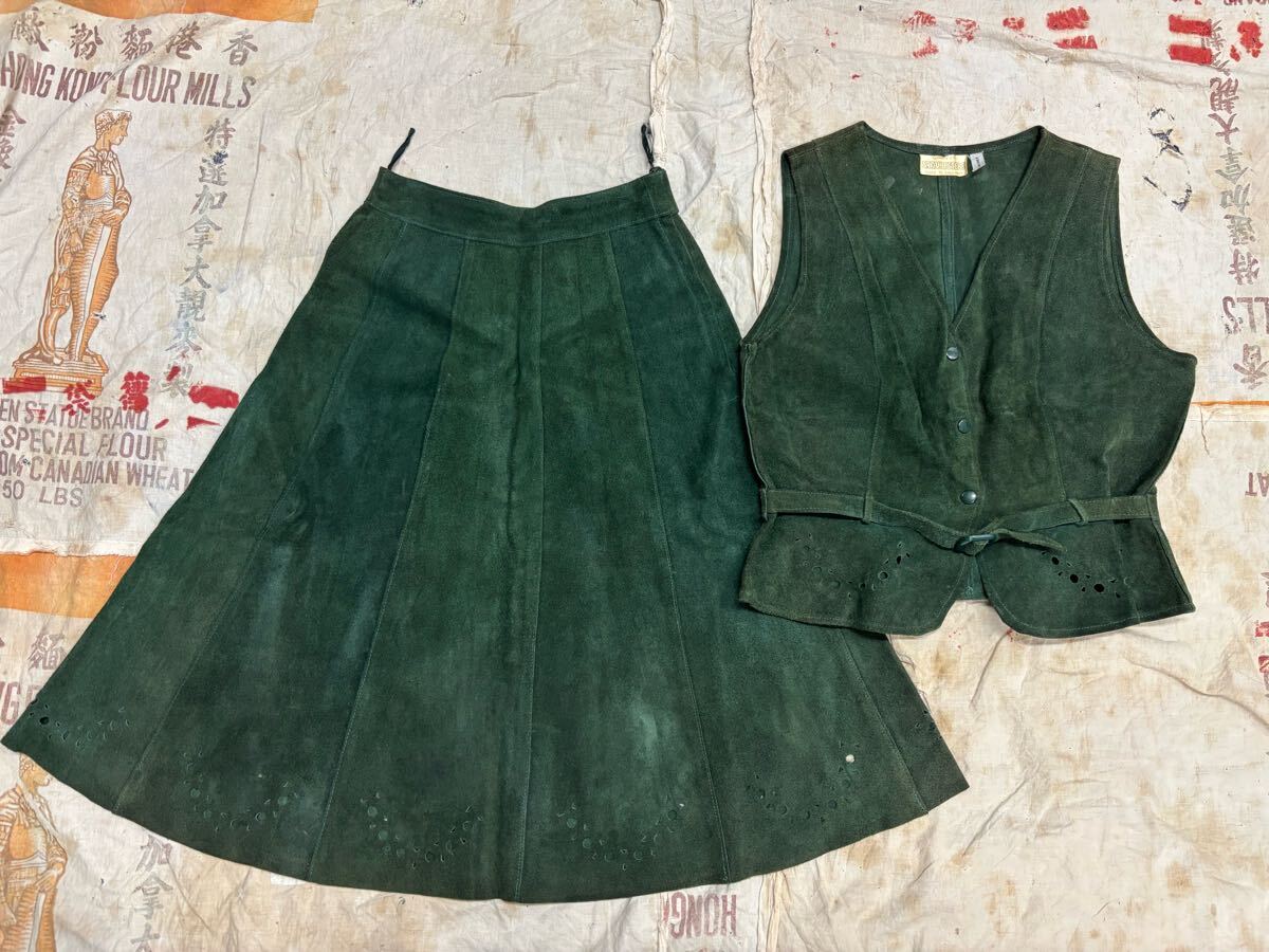 <SARAH PETERS>レディース ヴィンテージ スウェードレザー セットアップ ベスト+スカーフ イギリス製