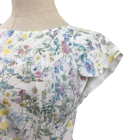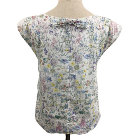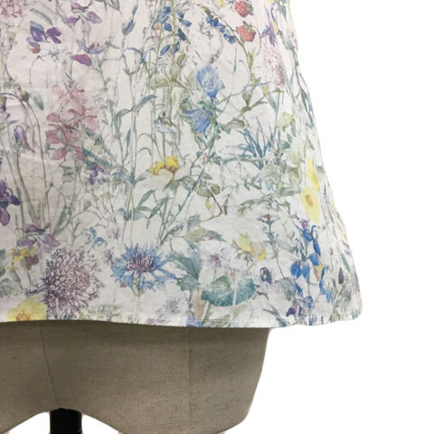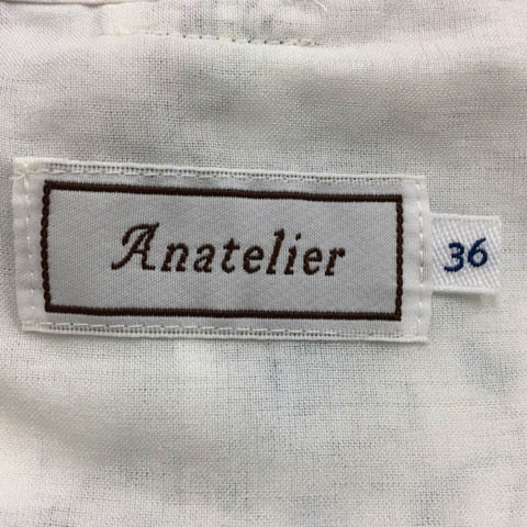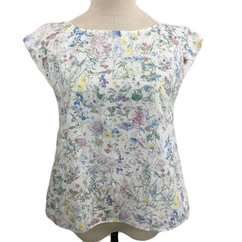 アナトリエ シャツ ブラウス カットソー プルオーバー ラウンドネック 総柄 マルチカラー フレンチスリーブ 半袖 36 白 緑 ホワイト