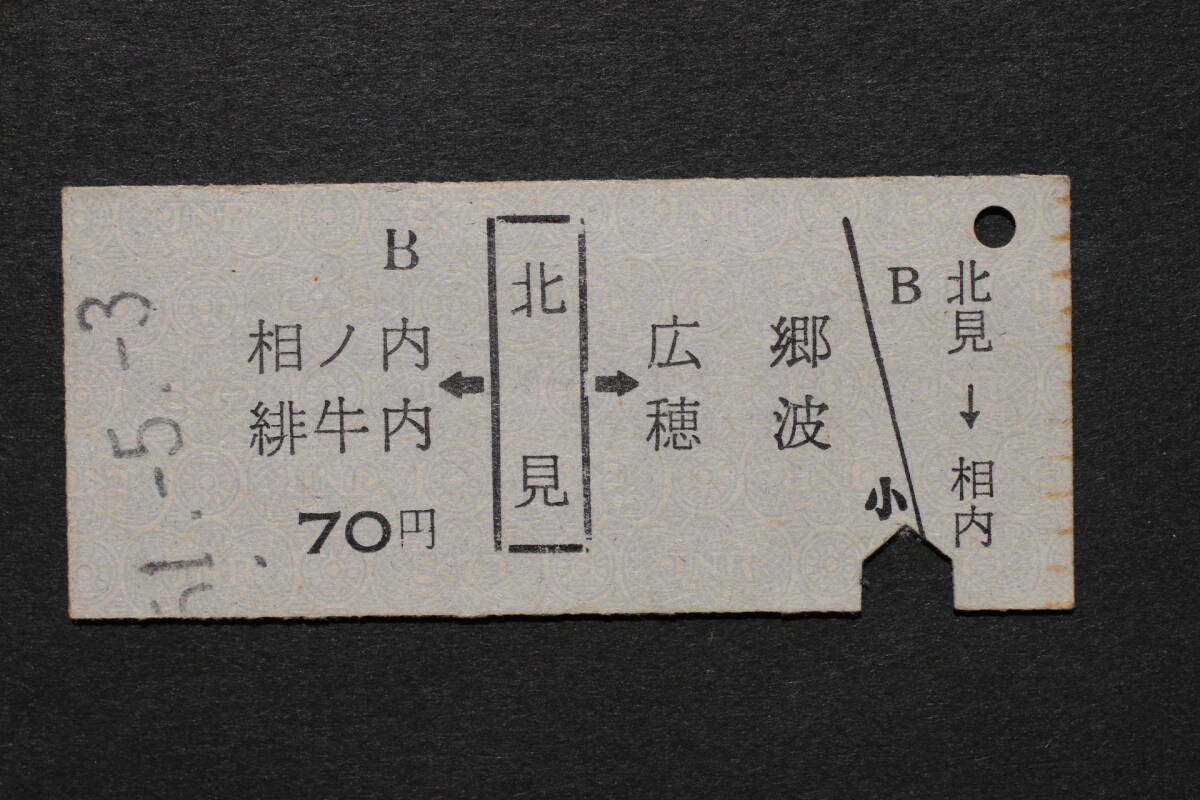 乗車券 相ノ内 緋牛内←北見→広郷 穂波 70円