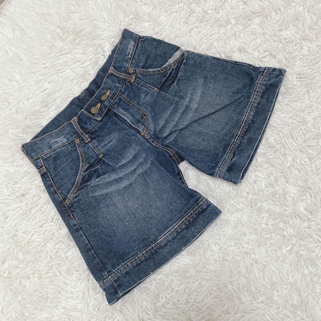 ショートデニムパンツ (38) ショーパン ダメージ加工 コットン100% 夏