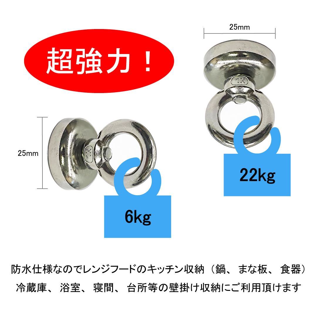 (A) 超強力 マグネットフック 磁石 25mm 7個セット 耐荷重22kg ネオジム磁石 ステンレス マグネット フック 強力 磁力 防腐 防錆