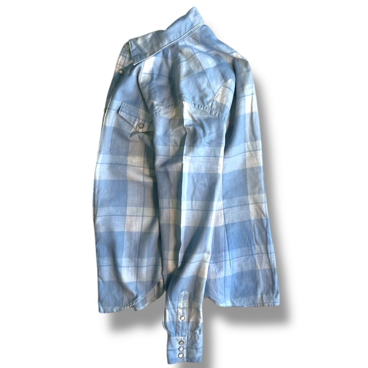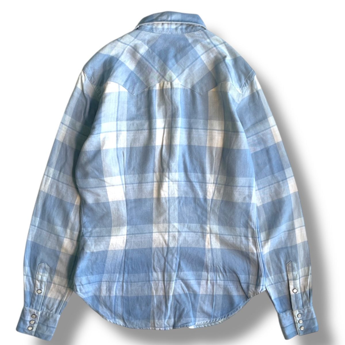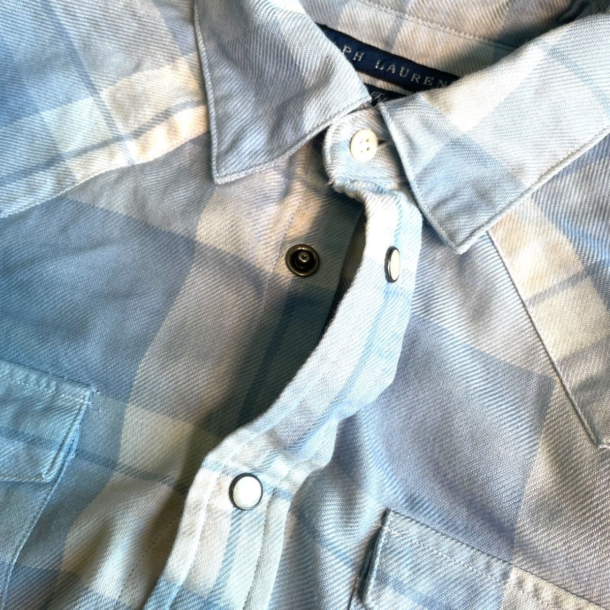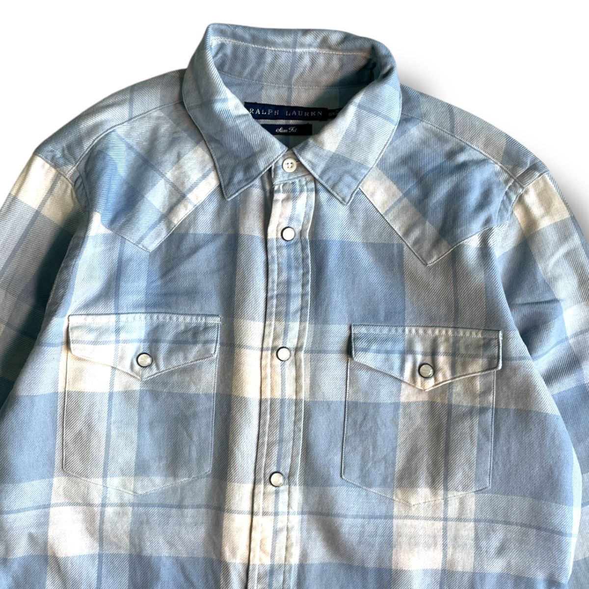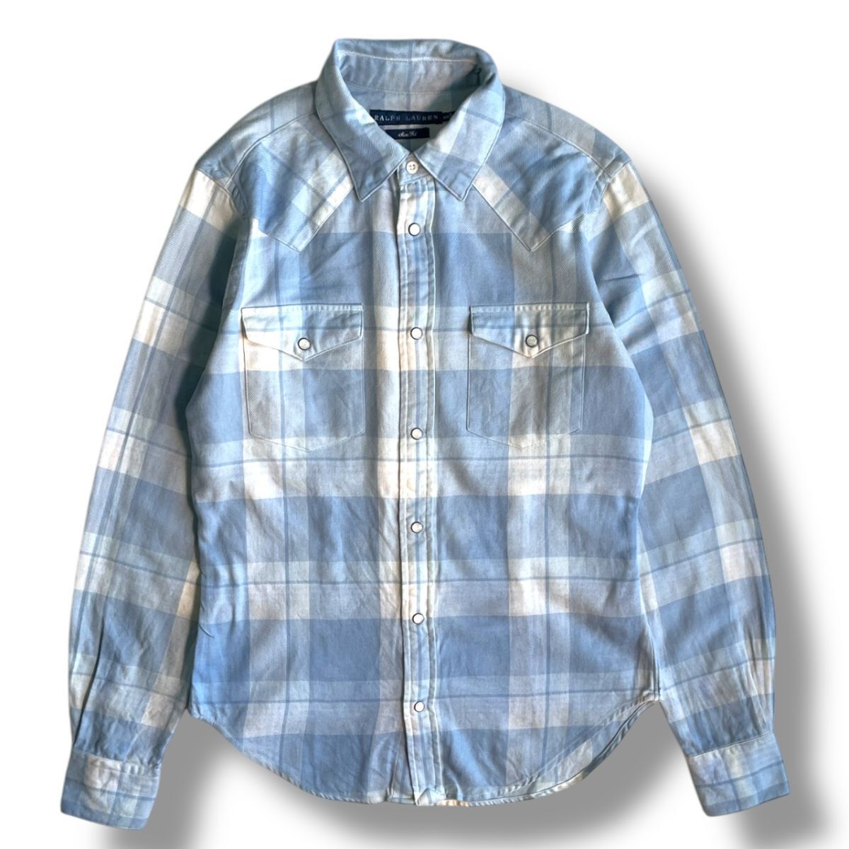 国内正規品★ RALPH LAUREN ラルフローレン レディース チェック柄 ウエスタン シャツ 長袖シャツ 水色系 Sサイズ コットンシャツ 古着