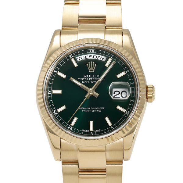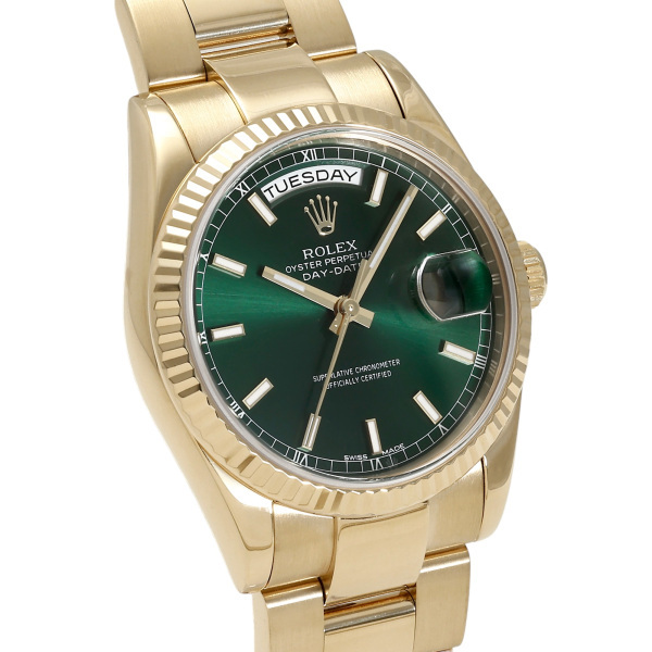 | 商品名 | ロレックス ROLEX デイデイト 36 118238 グリーン/バー文字盤 中古 腕時計 メンズ |