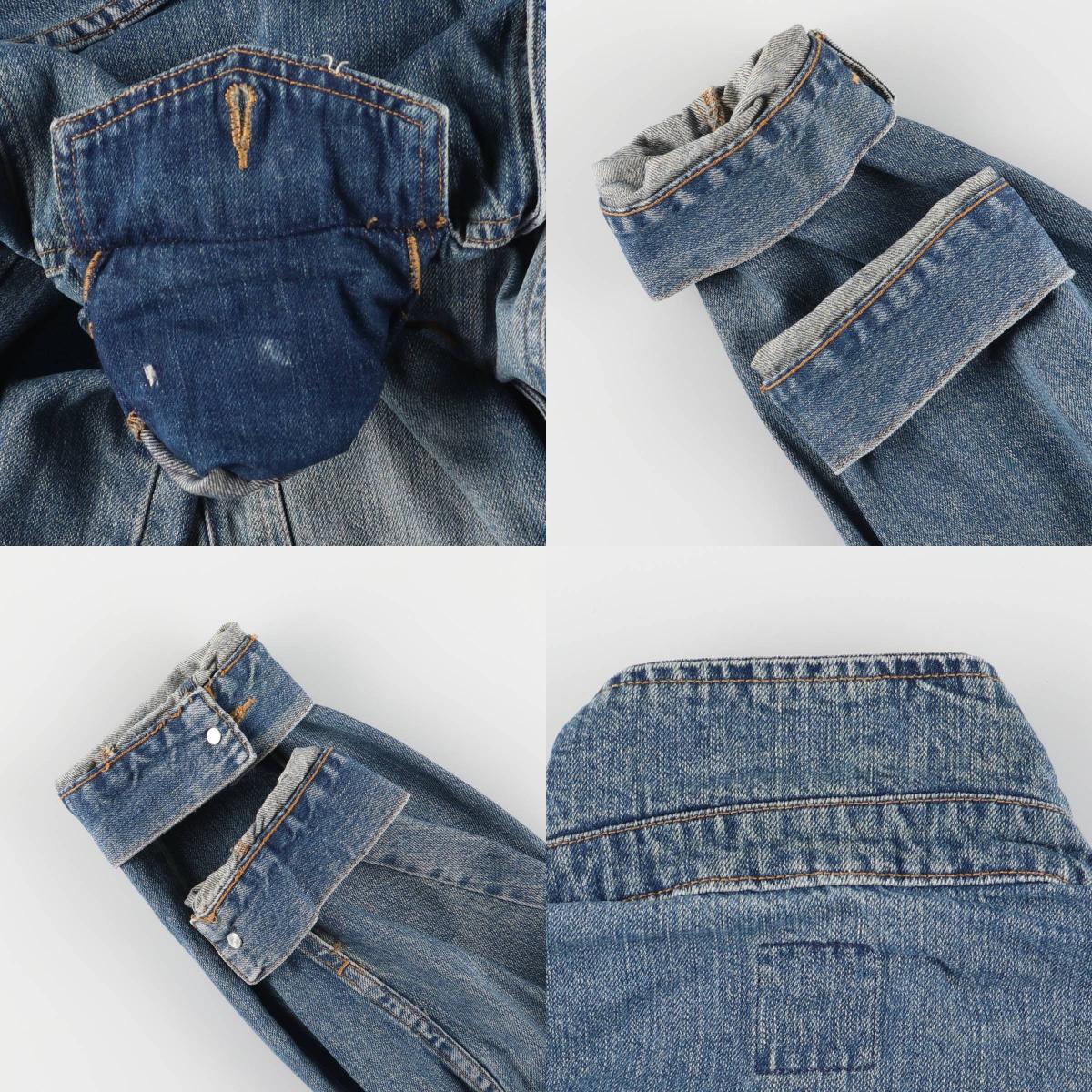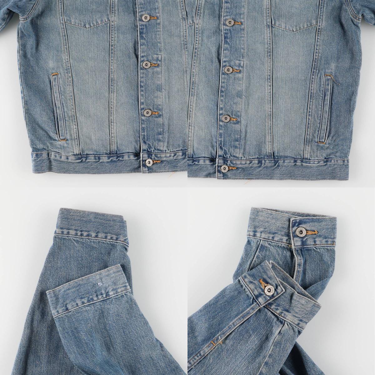 表記サイズ: M 着丈: 68cm 身幅: 60.5cm 肩幅: 52.5cm 袖丈: 63.5cm ![]() | ![]() ランク:C USEDデニムですので使用感、擦れ、色落ちなどございますが、まだまだご愛用していただけます。 古着という事をご理解の上ご注文よろしくお願いします。 【状態追記】 ●全体的に色褪せあり ●前、胸・腹部・裾・左右袖先・右胸ポケット内に汚れ ●前、左袖先に擦れ ●後、襟裏・裾・左右袖先に汚れ ●内側、左右袖先に汚れ |
