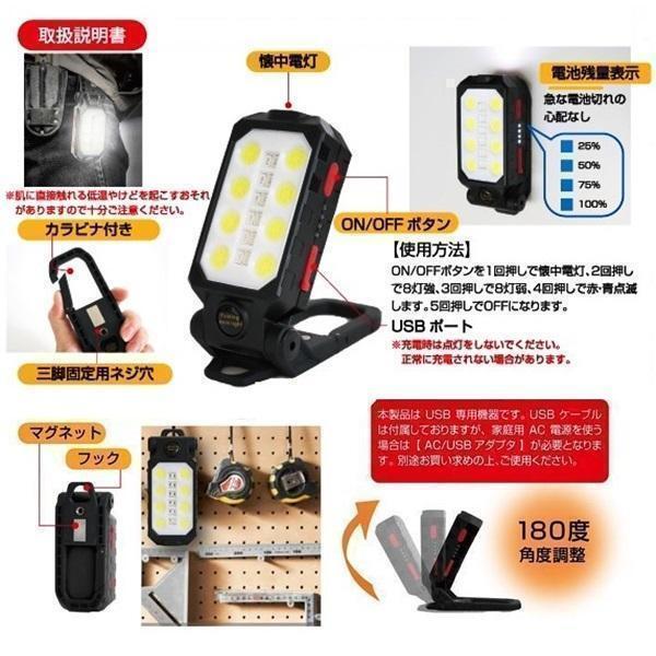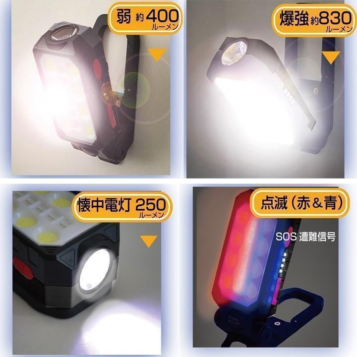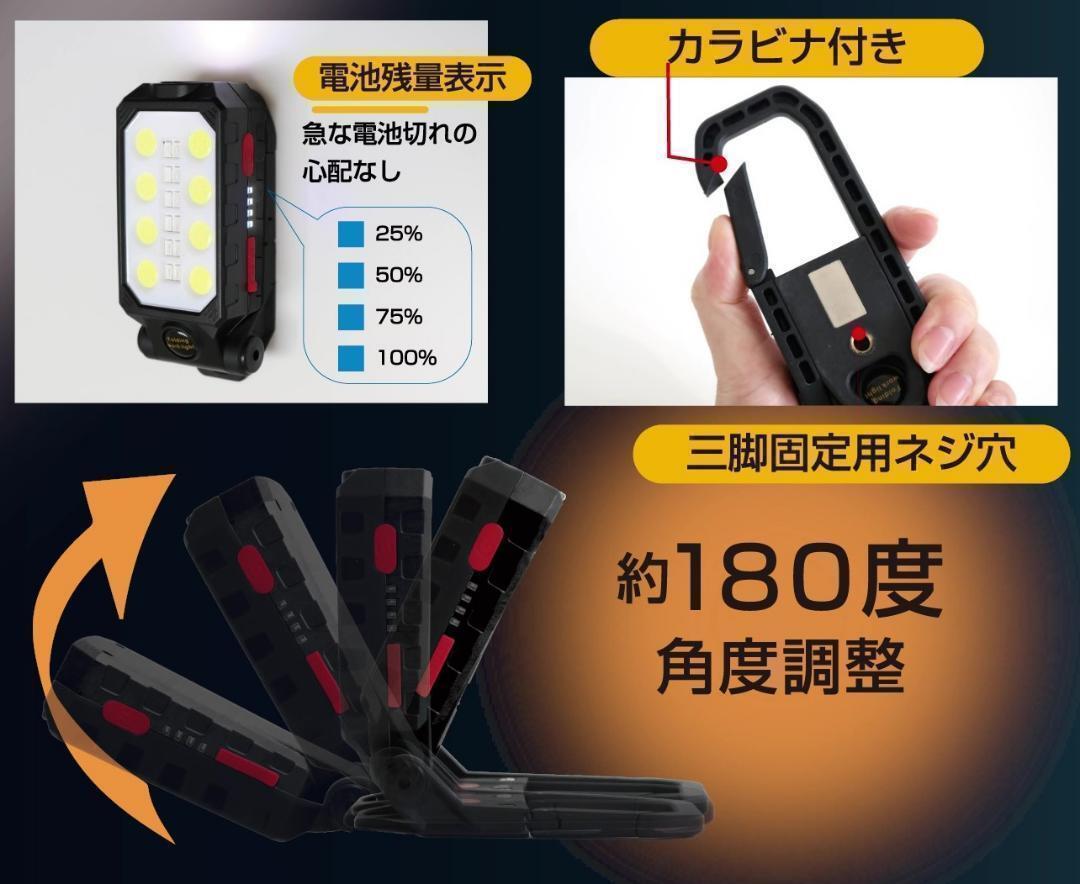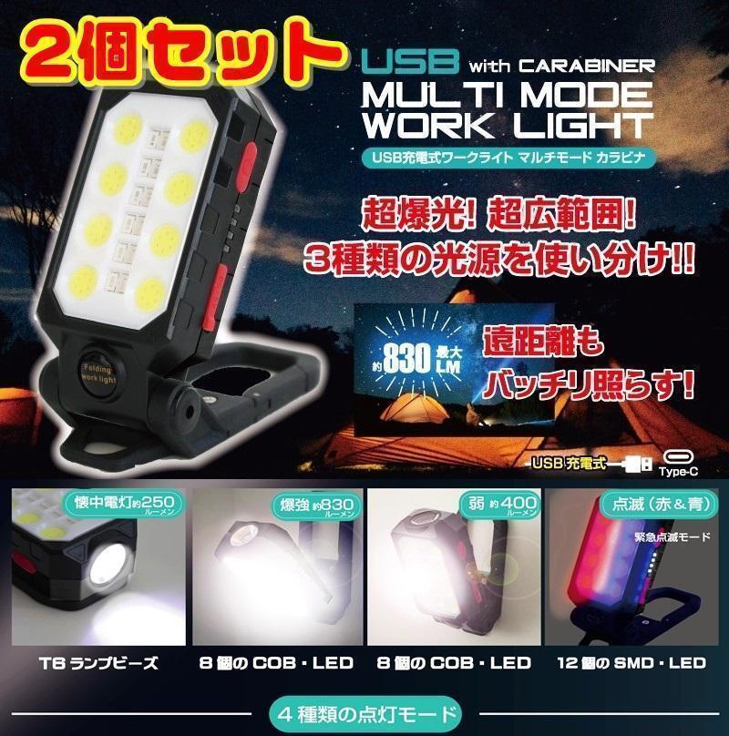 【訳あり品 2個セット】USB 充電式 マルチモード ワークライト カラビナ付き 多機能 高輝度 最大800LM ハンディライト マグネット SOS 防災