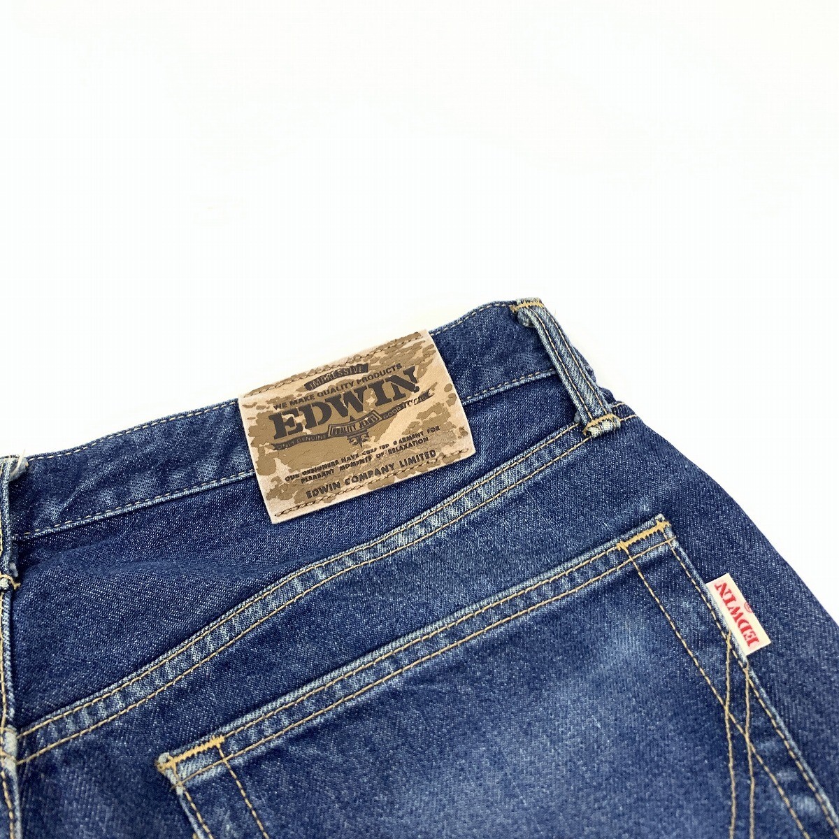 EDWIN エドウィン デニム ジーンズ ストレート アンクル丈 綿 コットン 大きいサイズ 青 紺 ブルー ネイビー 36 YC277