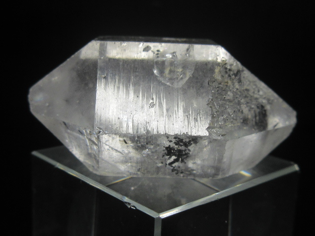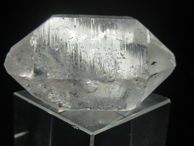 ご覧のように主に両端がポイント(ダブルターミネーター)となっており、内部に黒い内包物(炭素やマンガンと言われる)や太古の水を湛えていることが多い、大変に魅力的な水晶です。