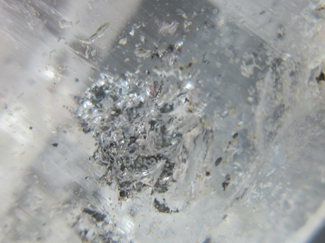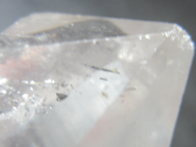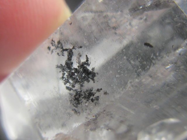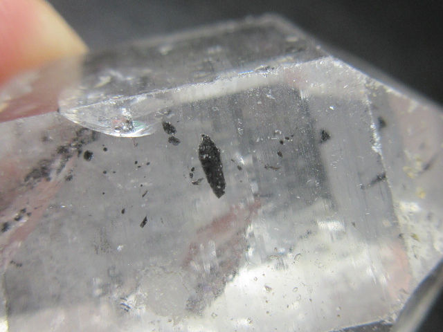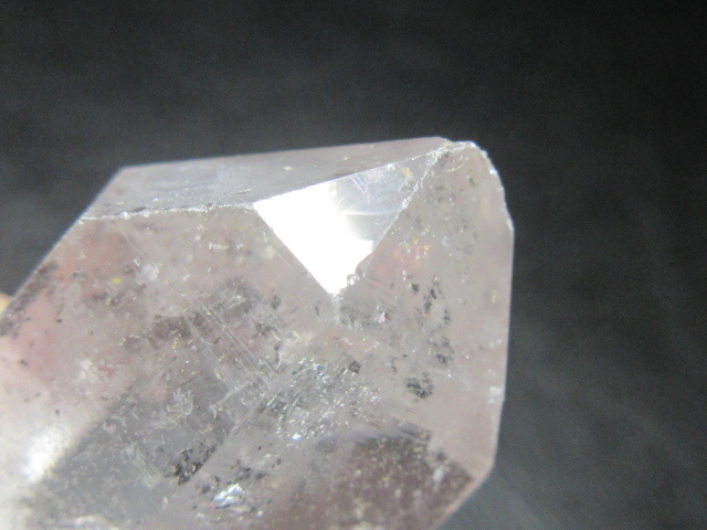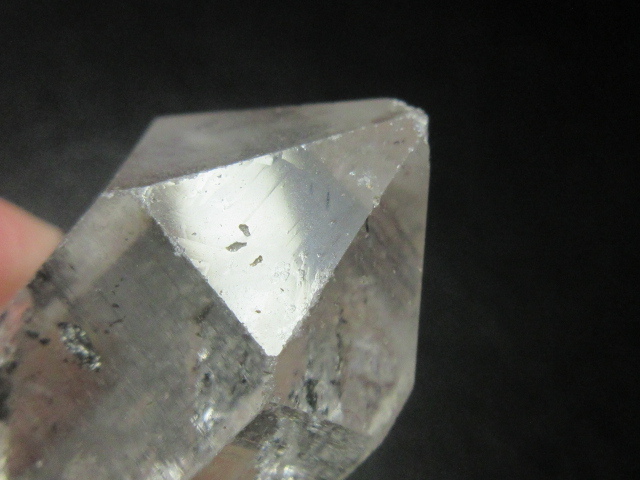 ・表面が鏡のように艷やかに輝く、素敵な水晶です。 内部には黒色鉱物の内包が見られます。