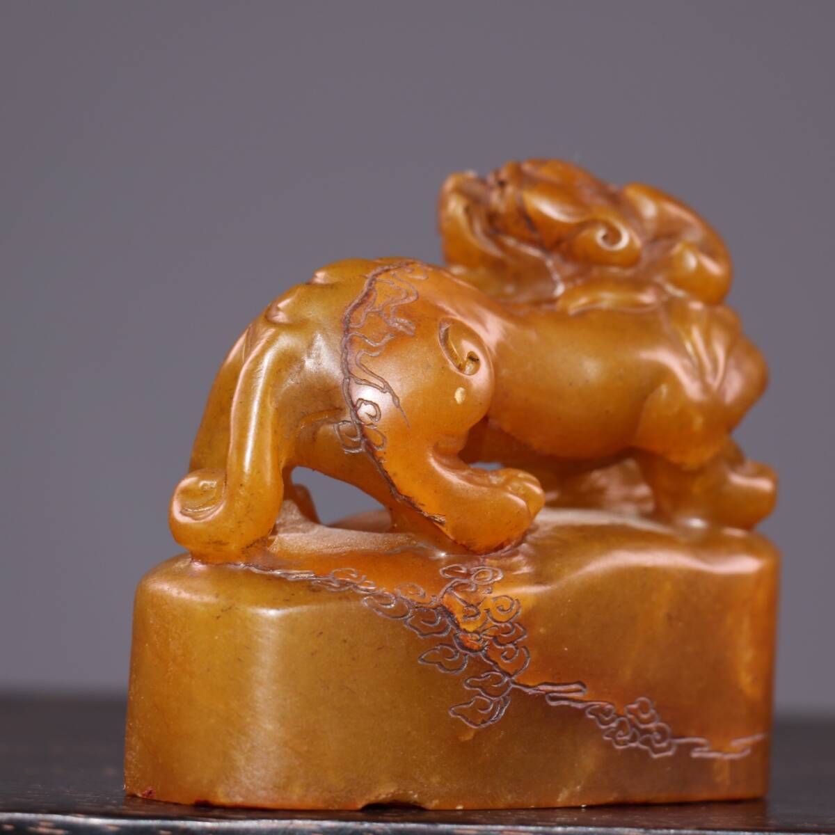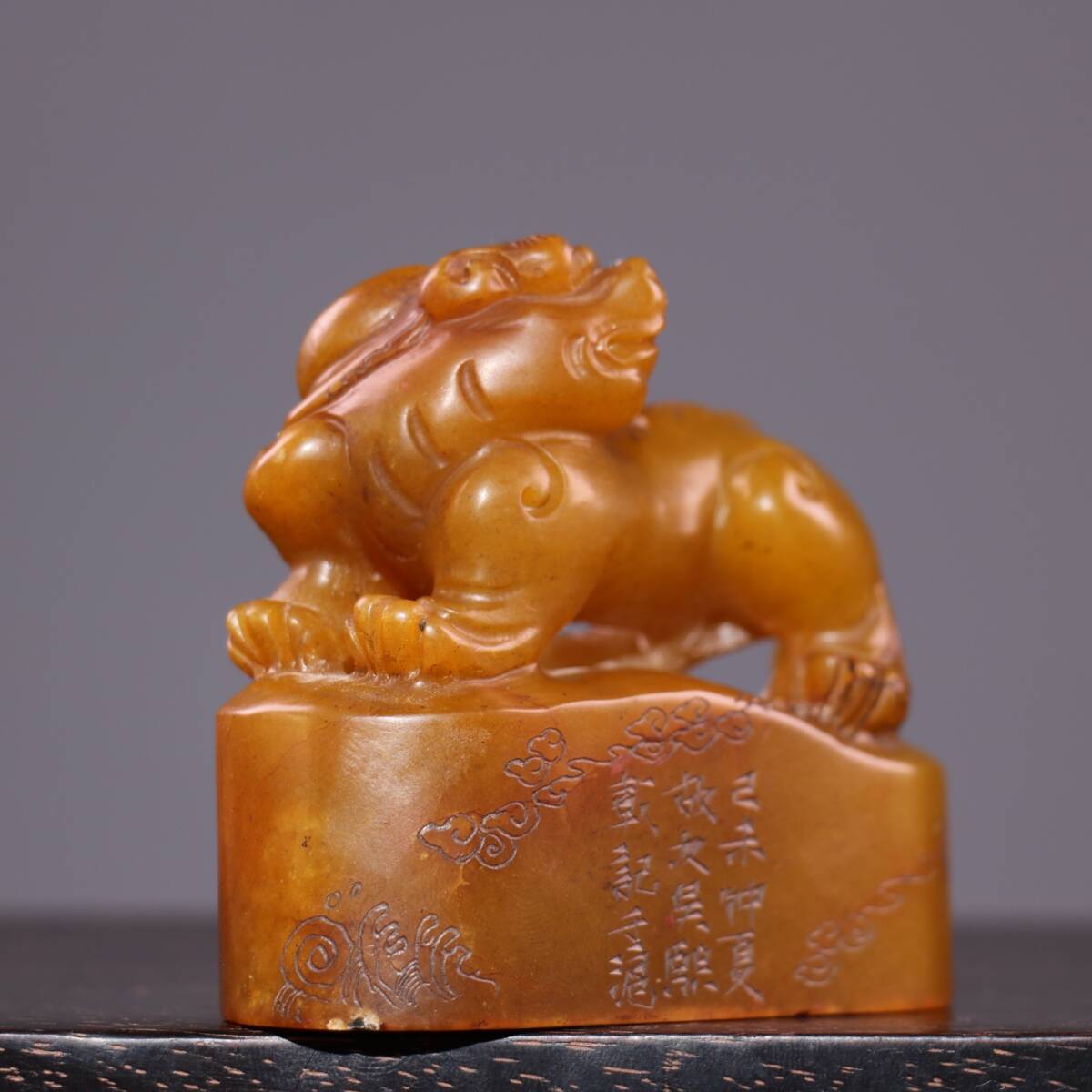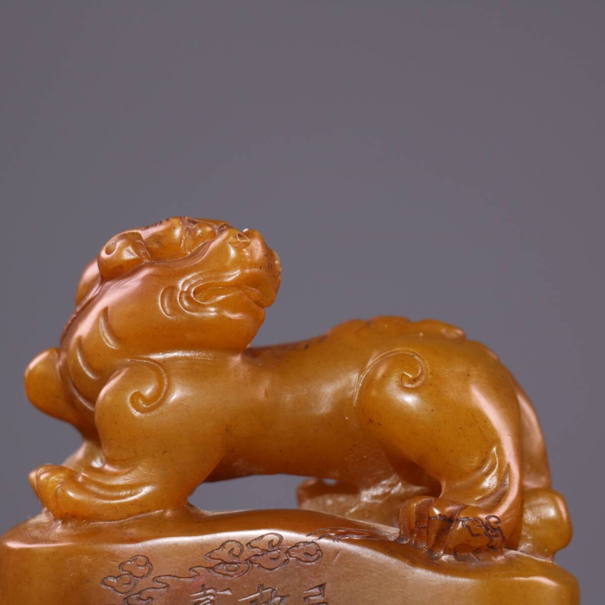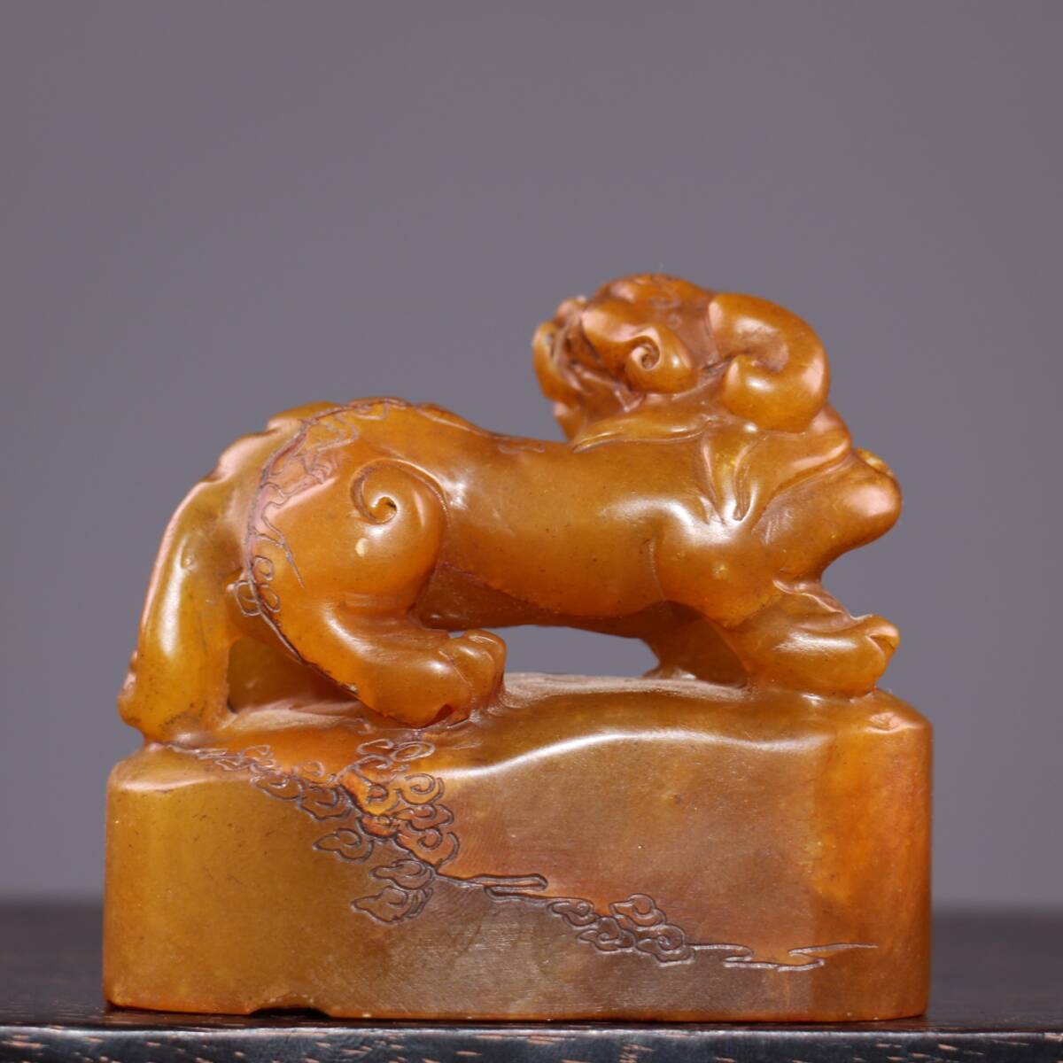 *珍品旧蔵* 【清代篆刻家 呉熙載】寿山石 田黄石 印章 精彫【金錢貔貅】老閑章 置物 天然石 篆刻 極細工 唐物 中国古玩 骨董品 古美味 H45