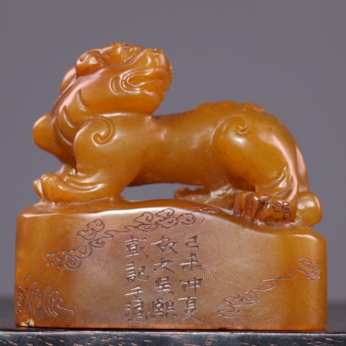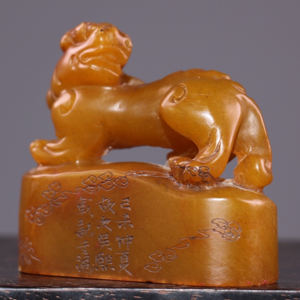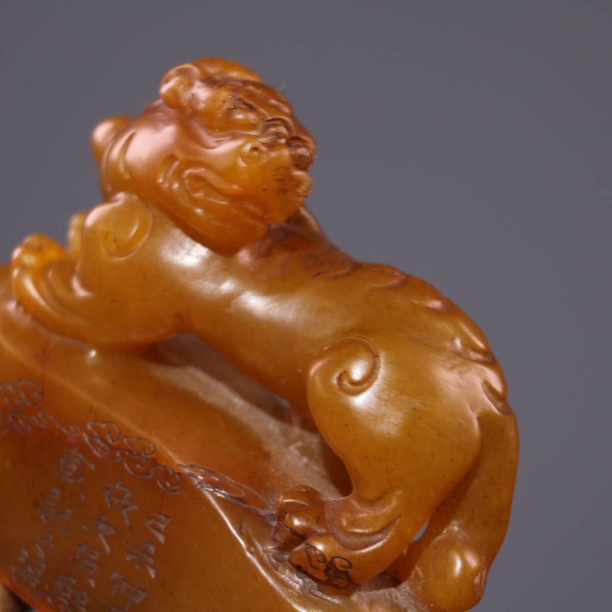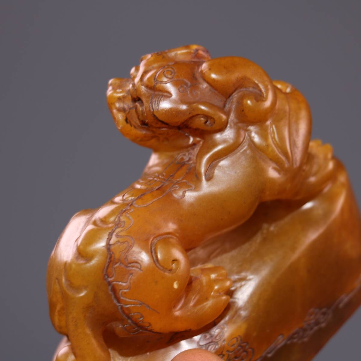 *珍品旧蔵* 【清代篆刻家 呉熙載】寿山石 田黄石 印章 精彫【金錢貔貅】老閑章 置物 天然石 篆刻 極細工 唐物 中国古玩 骨董品 古美味 H45