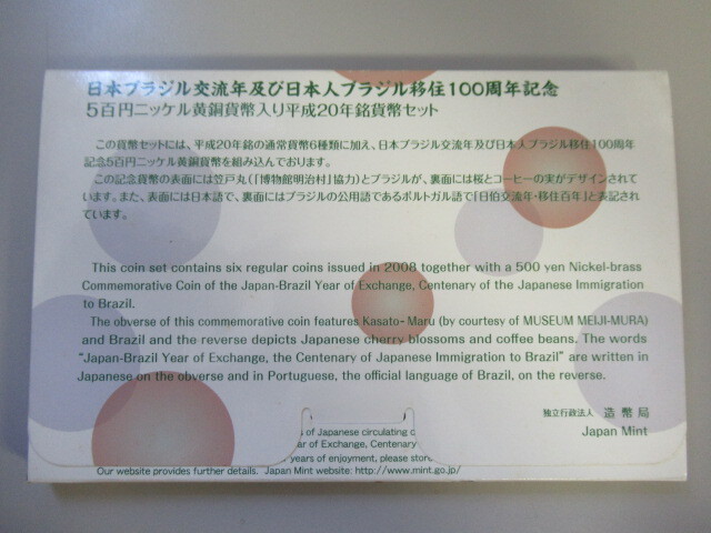 ◆ 日本ブラジル交流年及び日本人ブラジル移住100周年記念 額面1166円 記念硬貨 日伯交流年 ミント コイン メダル 平成20年 2008