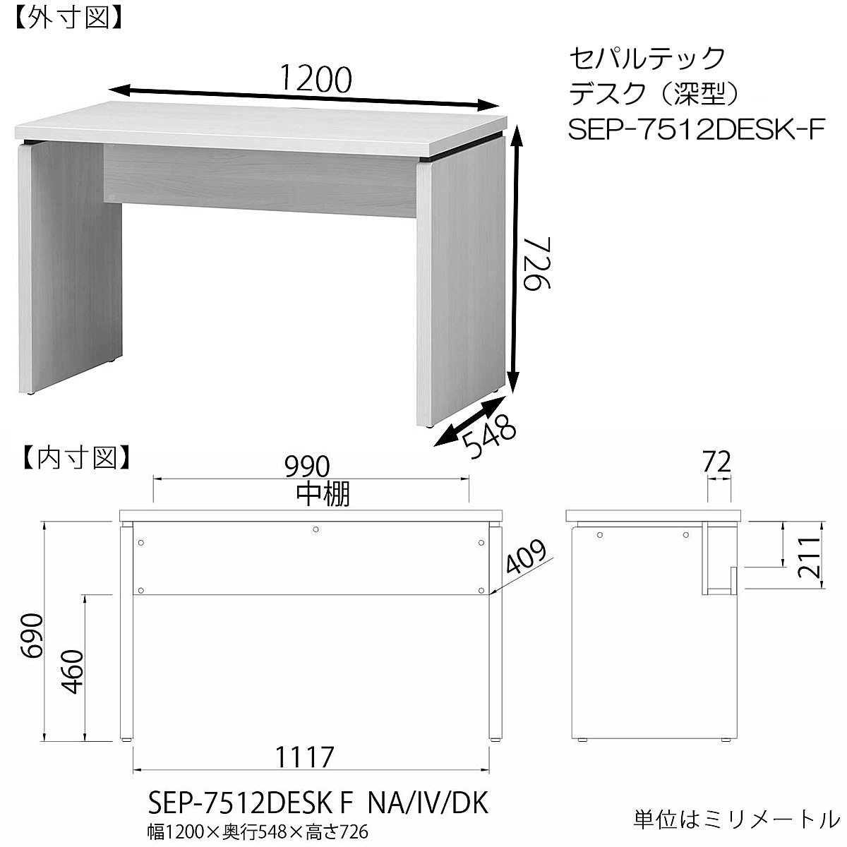 | 商品名 | デスク(深型) セパルテック SEP-7512DESK-F-NA |