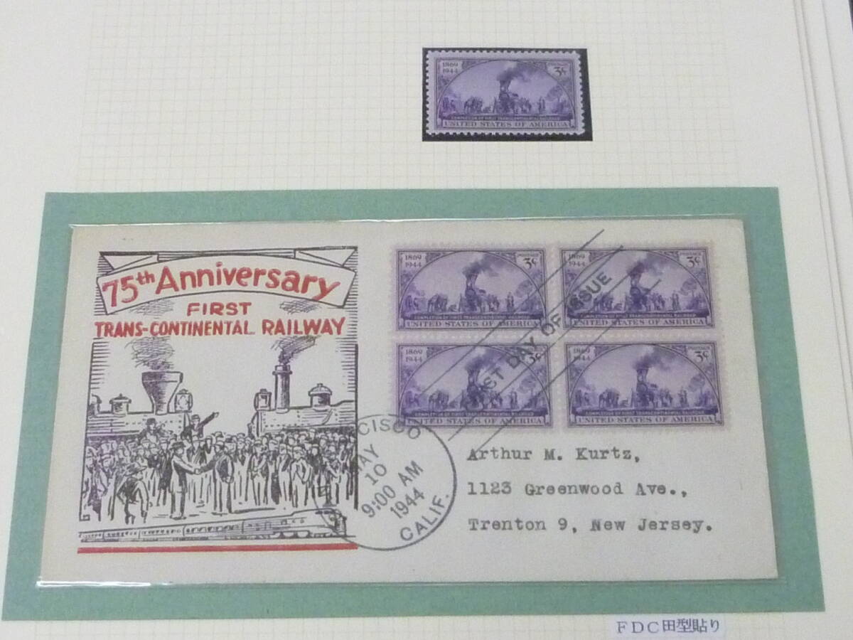 鉄道切手№17 アメリカ 1944-52年 各種 記念 計5種+FDC5通+他 4リーフ 未使用NH~OH・VF ※説明欄必読