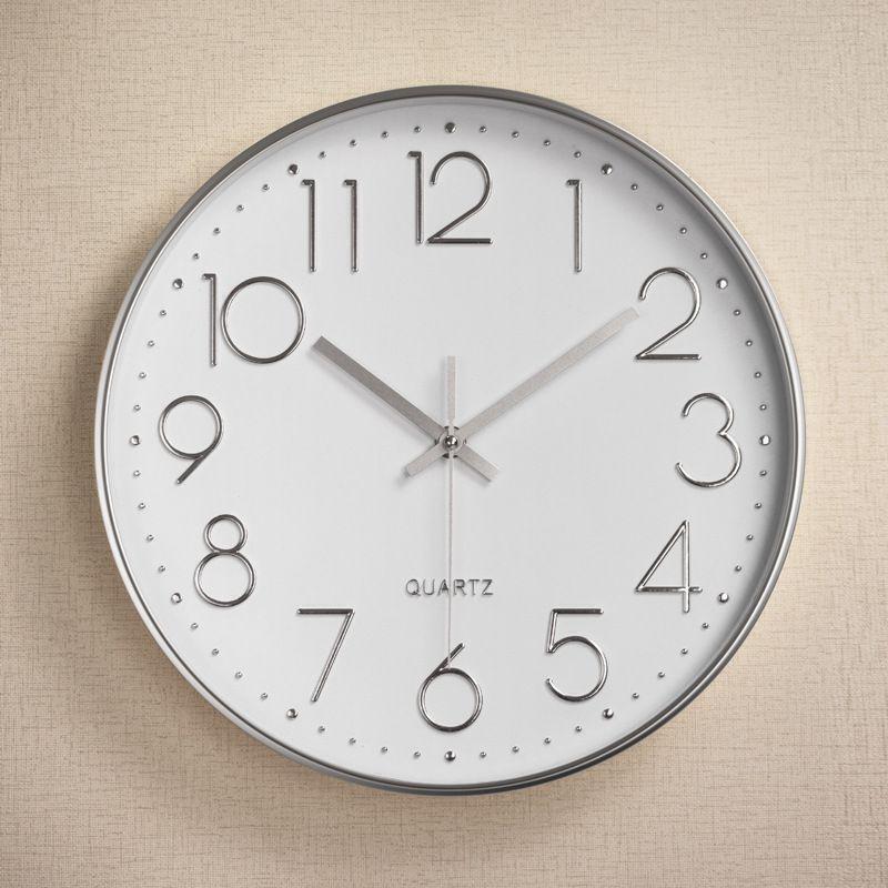 壁掛け時計 ホワイト×シルバー 北欧風 シンプル おしゃれ 掛け時計 (1197)