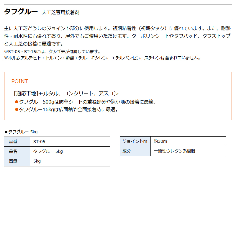 接着剤 人工芝用 人工芝専用接着剤 タフグルー 5kg DIY リフォーム 耐熱 耐水 屋外 モルタル コンクリート アスコン 対応 メモリーターフ