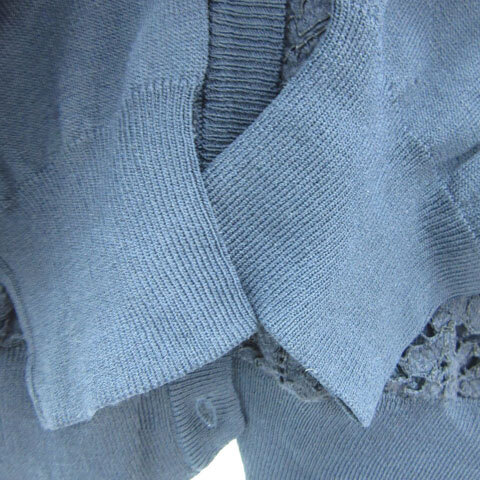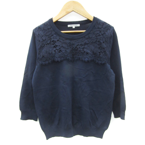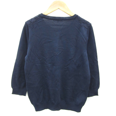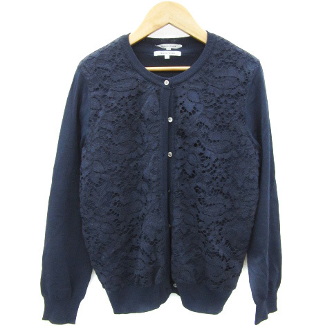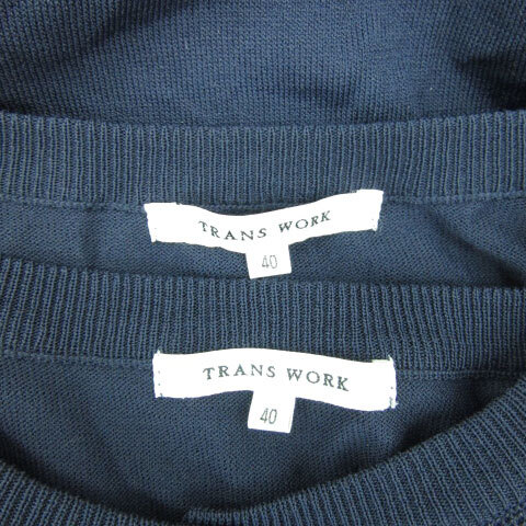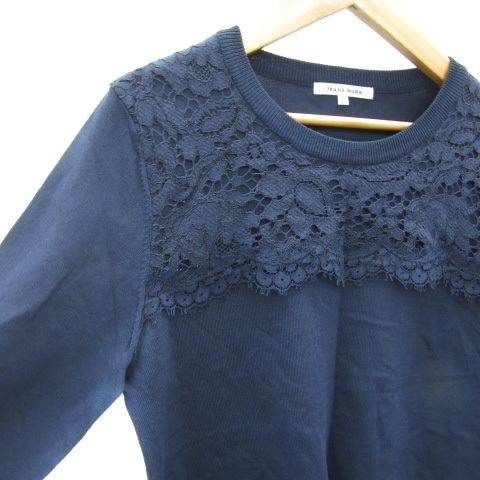 トランスワーク TRANS WORK アンサンブルニット カーディガン ミドル丈 カットソー 七分袖 レース 40 L ネイビー 紺 /YM16 レディース