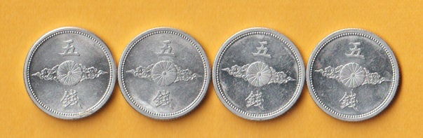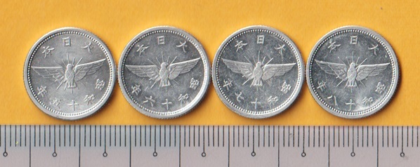 ☆5銭アルミ貨《昭和15、16、17、18年》 4枚  未使用~準未使用