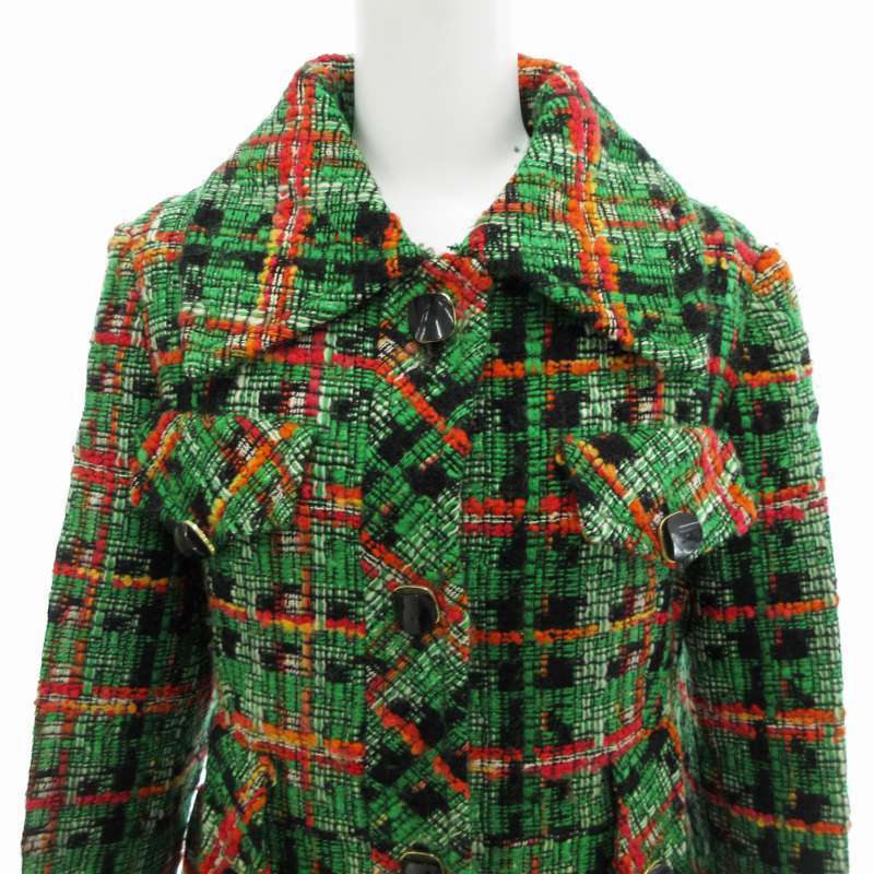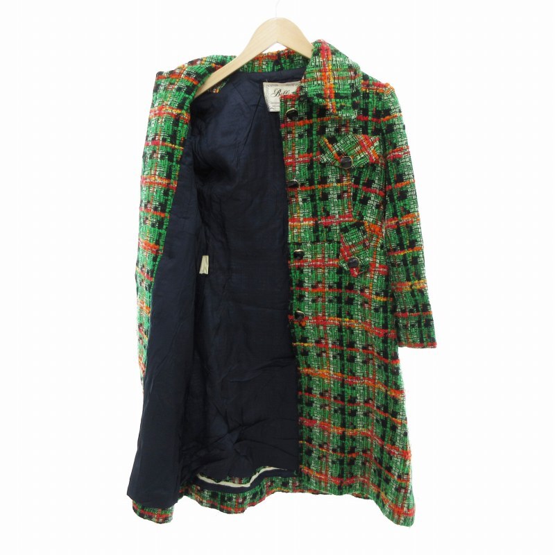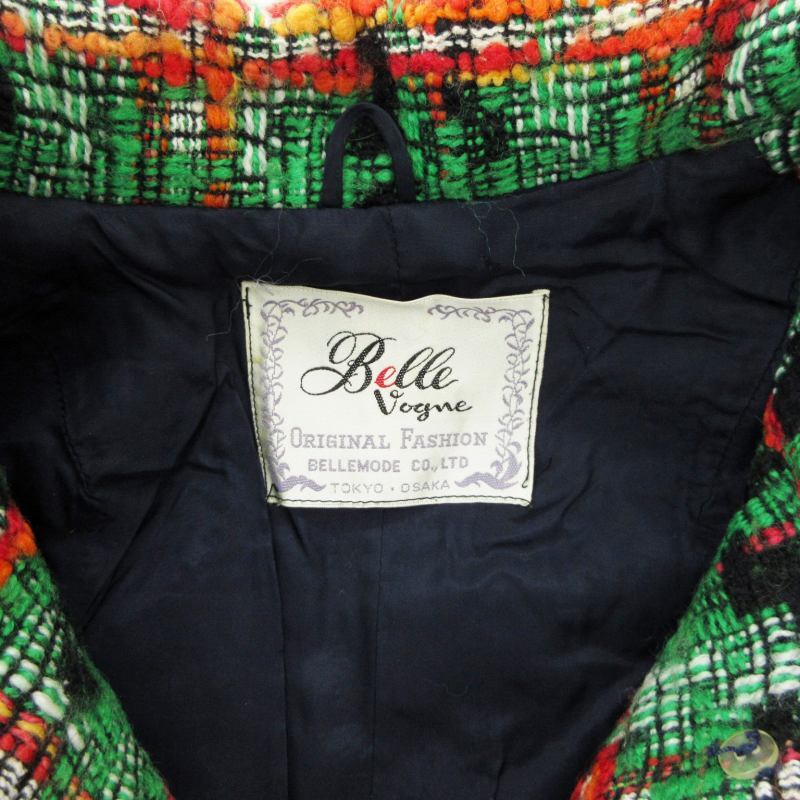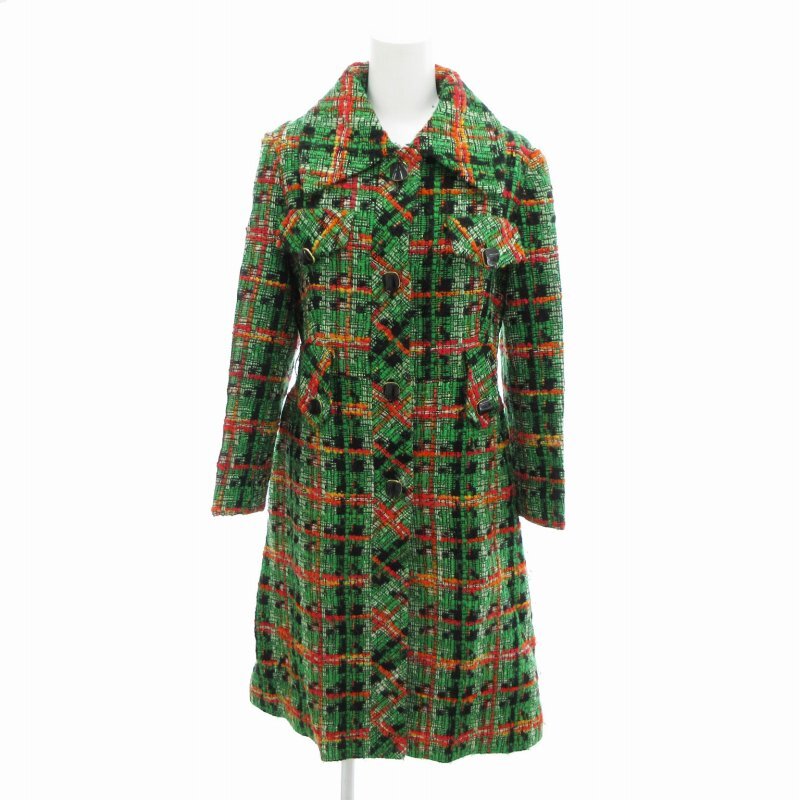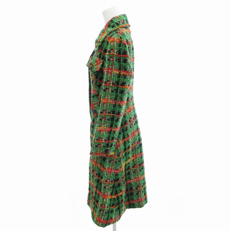 ベルヴォーグ BELLE Vogue ステンカラーコート 総柄 ツイード ウール ロング丈 緑 グリーン /HO ■GY99 レディース