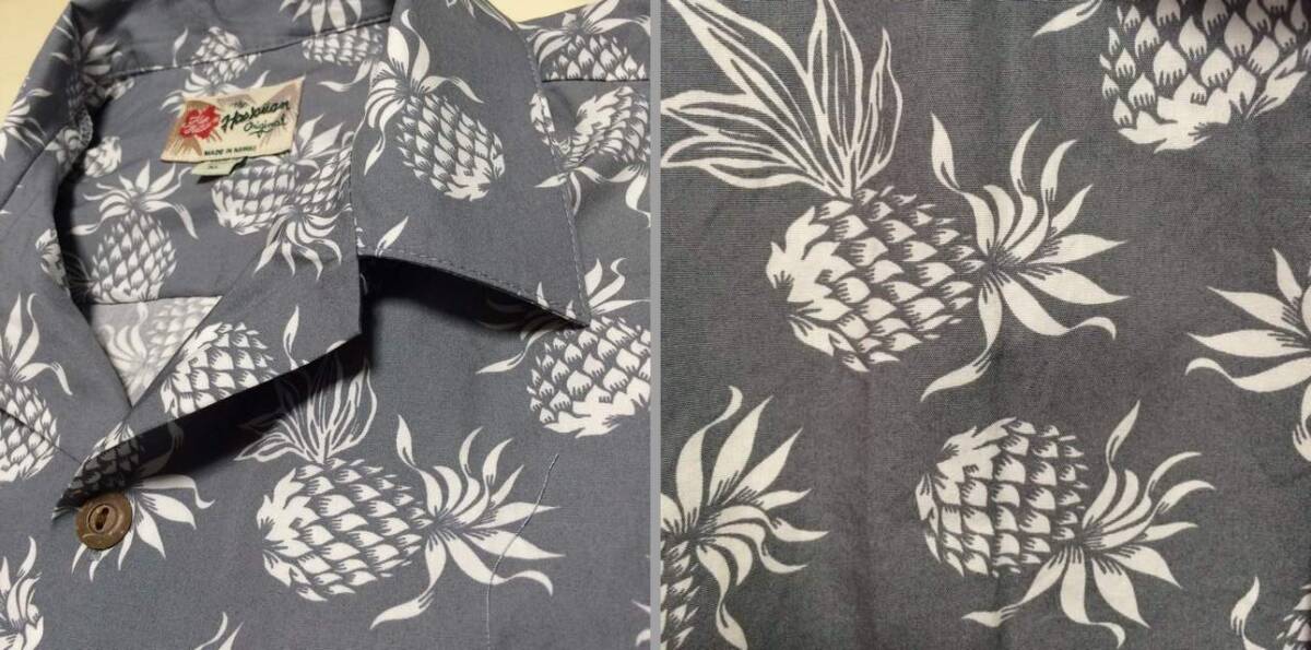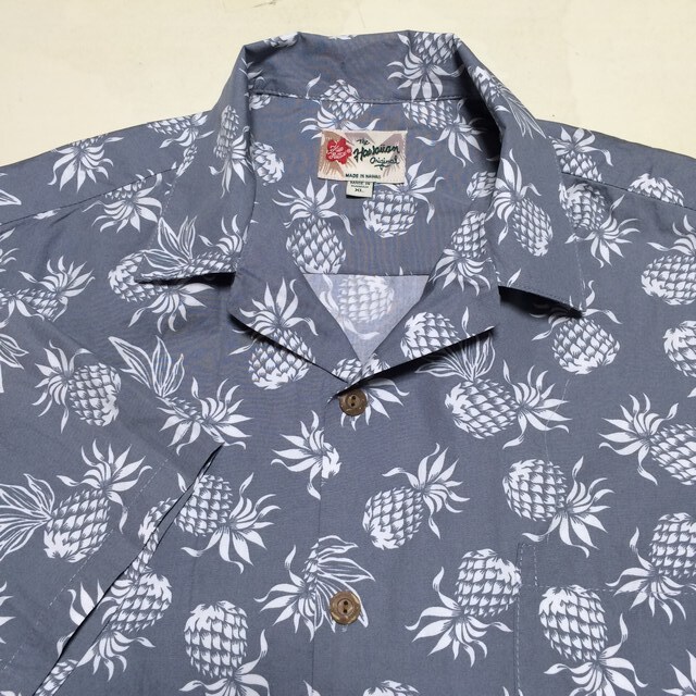 | 商品説明・状態 | 1.The Hawaiian Orijinal の半袖スタンダードカラーアロハシャツで、淡グレー色をベースに、白抜きでパイナップル柄が全面にプリントされています。 2.さらっとしたコットン生地でいかにもなアロハシャツです。 3.ほぼ新品に付き、スレ、ほつれ、目立つ退色はありません。サイズの合う方いかがですか。 | |