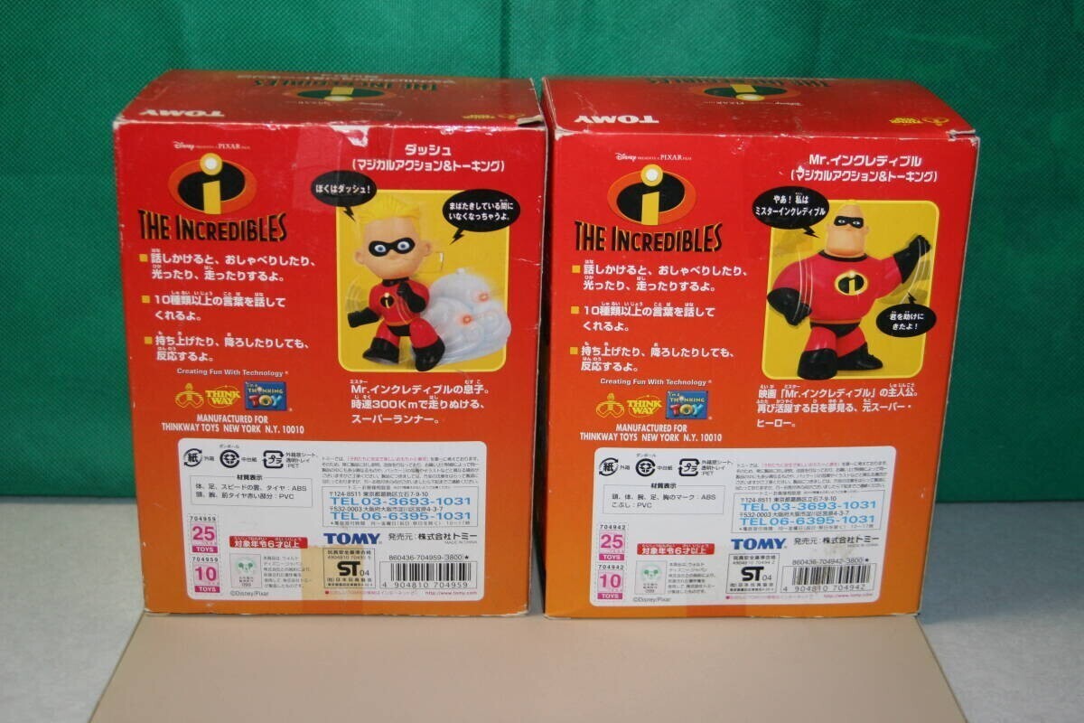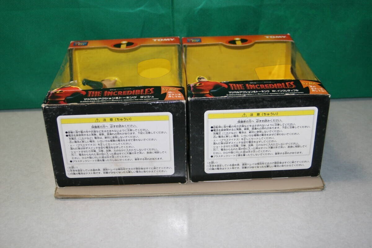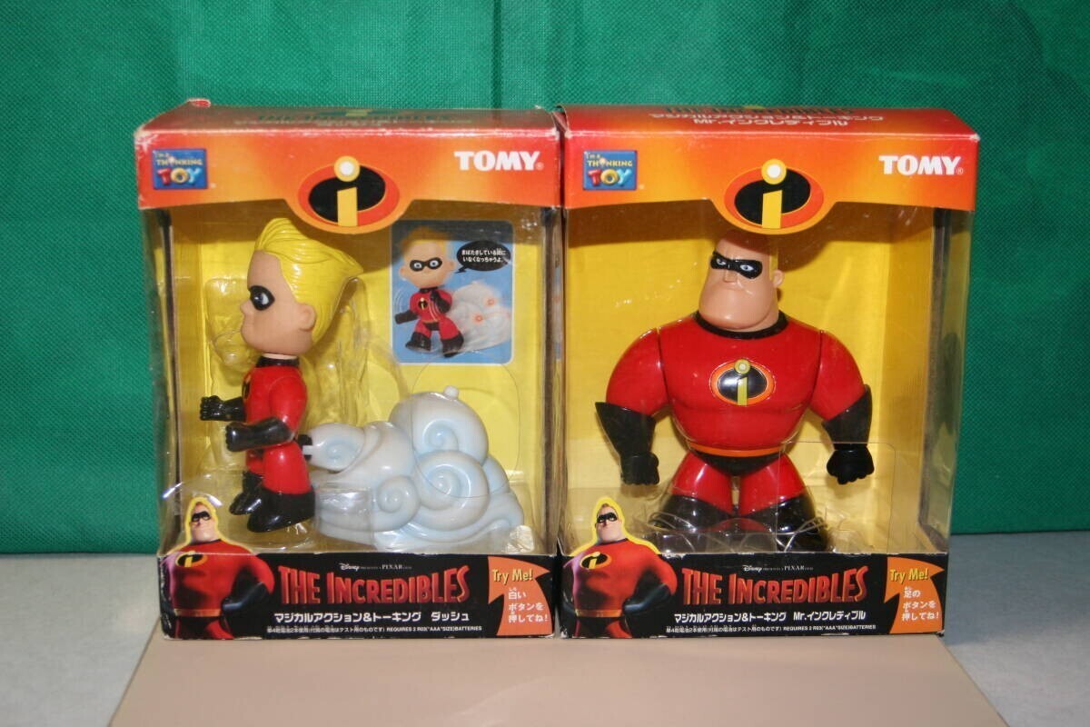 ご質問ありがとうございます。大変申し訳ありませんが、動かない原因は解りません。 写真が10枚載せてあり追加、又、入れ替えができない為、別に出品致しました。 商品ID d1199755605 商品名はディズニー The INCREDIBLES マジカルアクション&トーキング フィギュア Mr.インクレディブル (動作NG) & ダッシュ 2体セット TOMY 走る (同じです) です。 よろしくお願いいたします。 (尚、こちらの出品を終了した際、質問内容も消えてしまいました為、こちらの商品説明に記載させていただきました。) ------------------------------------------------------------------------------------- TOMY製品。 The INCREDIBLES マジカルアクション&トーキング 「Mr.インクレディブル」と「ダッシュ」の2個をセットで。 但し、Mr.インクレディブルは動作しません。 ダッシュは喋ったり光ったり、走ったりします。 [箱のサイズ]約19.5cm(高さ)×15.4cm(幅)×11cm(奥行き) 中古品。 Mr.インクレディブルは動作しません。フィギュア自体は綺麗です。飾り物としてご利用下さい。ジャンク扱いでお願いいたします。 ダッシュは動作致しました。 単4電池2本必要です。 箱は汚れ、擦れ、潰れあります。状態悪いです。 NC・NRでお願いいたします。 ★下記、注意メッセージを必ずご確認下さい。よろしくお願いいたします。 ↓ ↓ ↓ ↓ ↓ ↓ ↓ ↓ ↓ ↓ ↓ ↓ ↓ ↓ ↓ ↓ ↓ ↓ ↓ ↓ ↓ ↓ 落札後、48時間以内にご連絡頂けない場合は落札者都合にて削除いたします。 新規の方は入札前に質問欄より「入札する意思がある旨」ご連絡をお願いいたします。 頂けない場合は入札を取り消しいたします。(入札後、取引を全く進める事が出来ない方が頻繁におります。) 取引メッセージをお読みにならない方、マイナス評価(評価0以下)の方は入札をご遠慮ください。マイナス評価の場合は入札を取り消しいたします。 送料について、ご不安な方は必ず、質問欄にて入札前にご連絡をお願いいたします。 お支払いはかんたん決済のみです。必ず、期限内でのお支払いをお願いいたします。 よろしくお願いいたします。 ↑ ↑ ↑ ↑ ↑ ↑ ↑ ↑ ↑ ↑ ↑ ↑ ↑ ↑ ↑ ↑ ↑ ↑ ↑ ↑ ↑ ↑