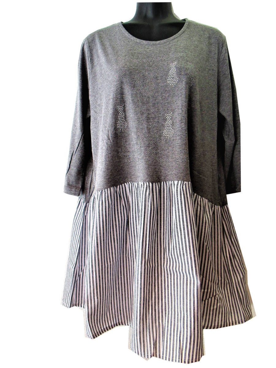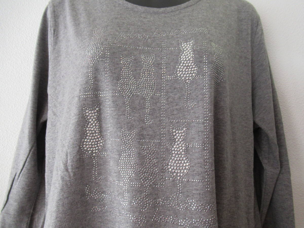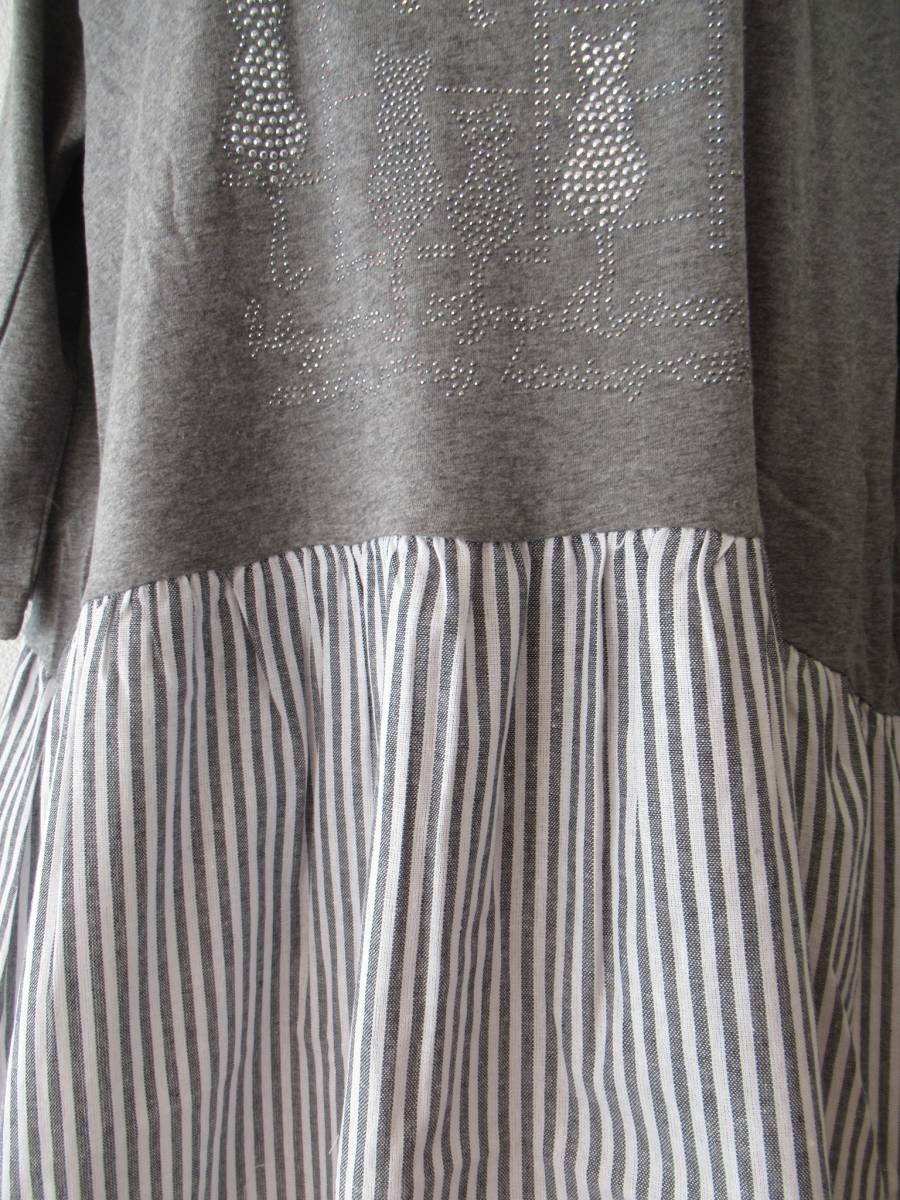 レディースファッション トップス チュニック 春夏モデル ラインストーン猫 Aラインチュニック7分袖 サービス品 グレー ka4530g★