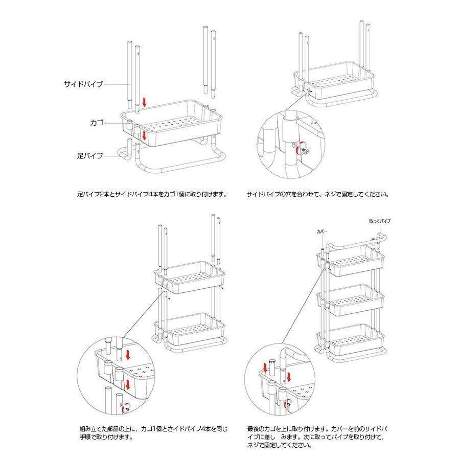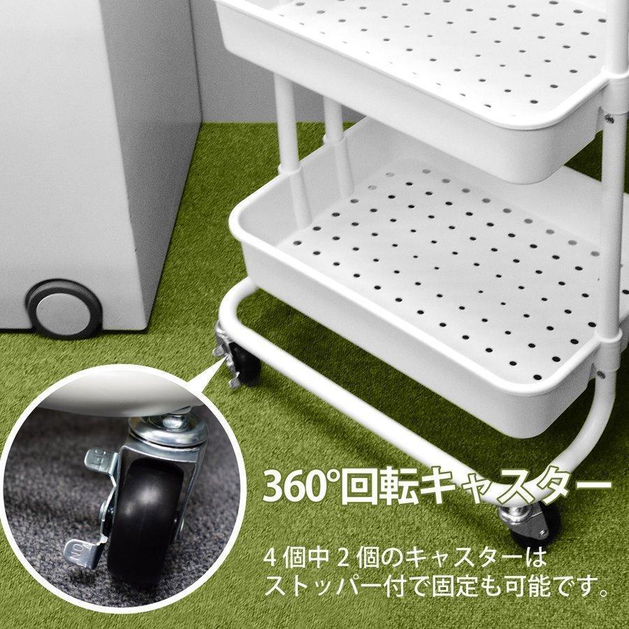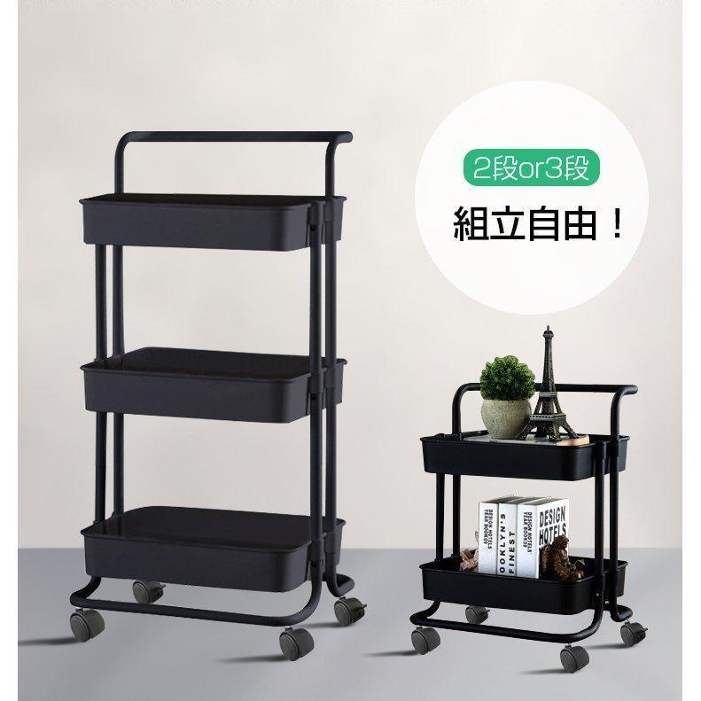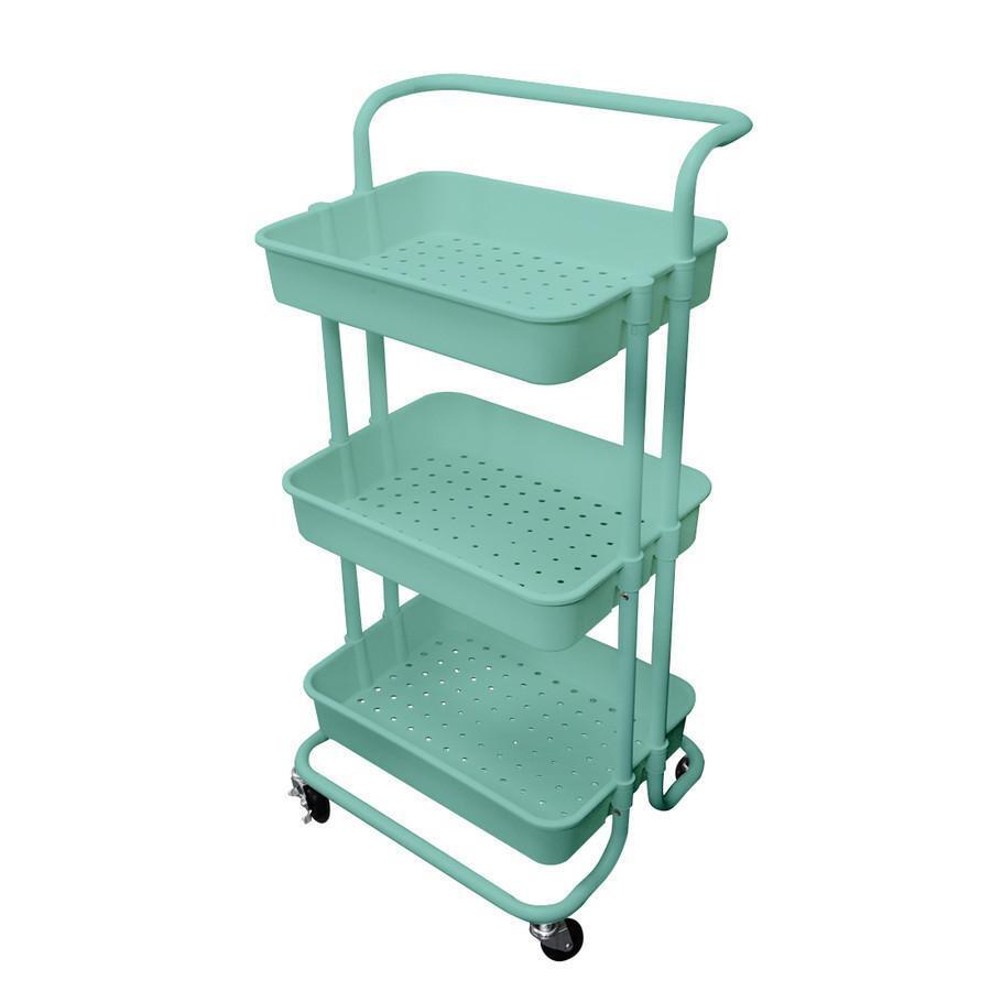 | キッチンワゴン 【ブルー】 キャスター付き スチールラック バスケットトローリー スリム 3段 バスケット ハンドル付き 収納ラック LB-198 | |||||||||||
