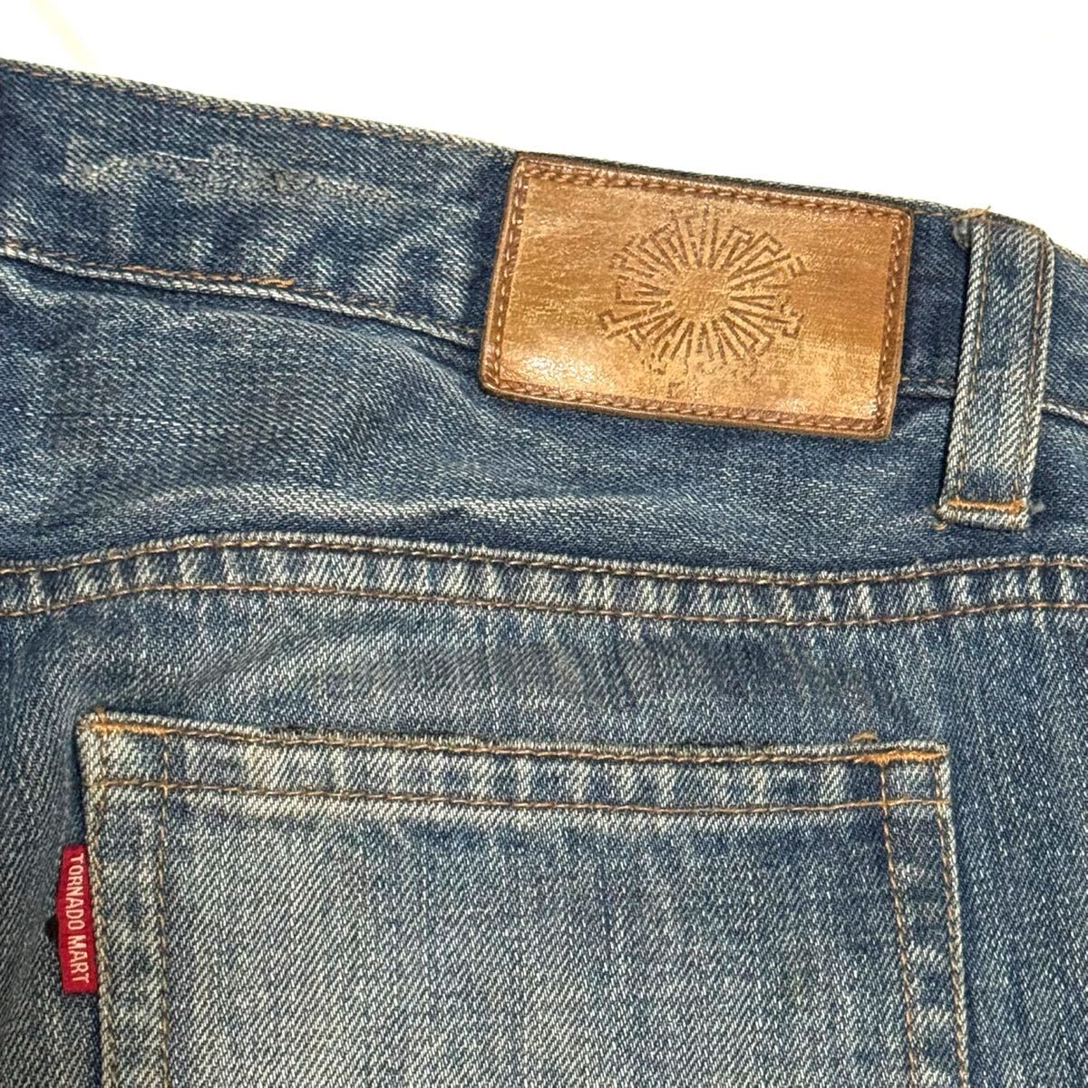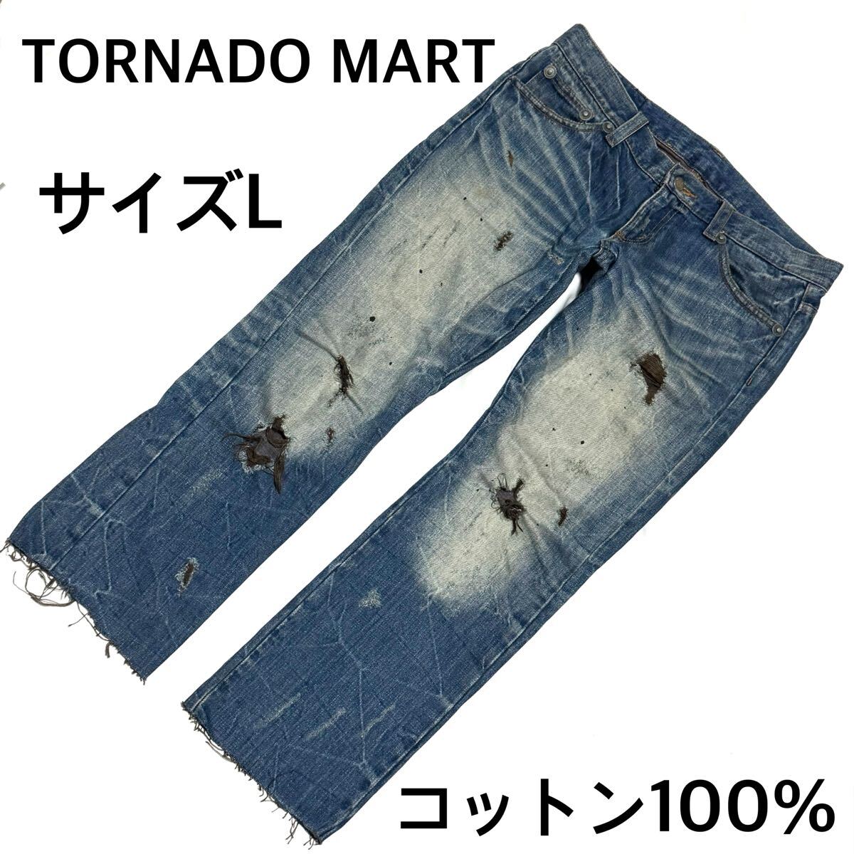 人気ブランド【TORNADO MART】のダメージ加工デニムパンツ。ヴィンテージ感ある色落ちとクラッシュ加工、切りっぱなしの裾が個性を演出。ストレートシルエットで脚長効果も◎。コットン100%で履き心地も抜群。古着好き、個性派ファッション好きにおすすめの1本です。