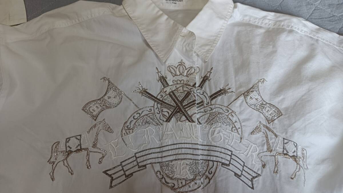 レデイース 長袖オーバーブラウス 刺繍 ホワイト 古着