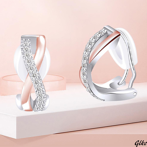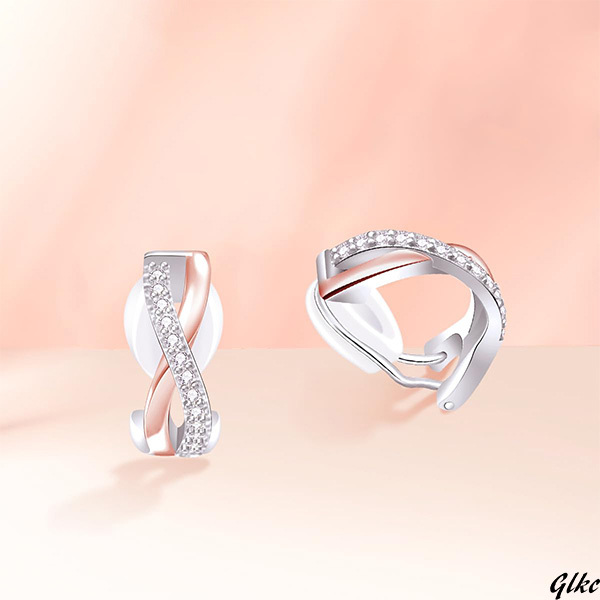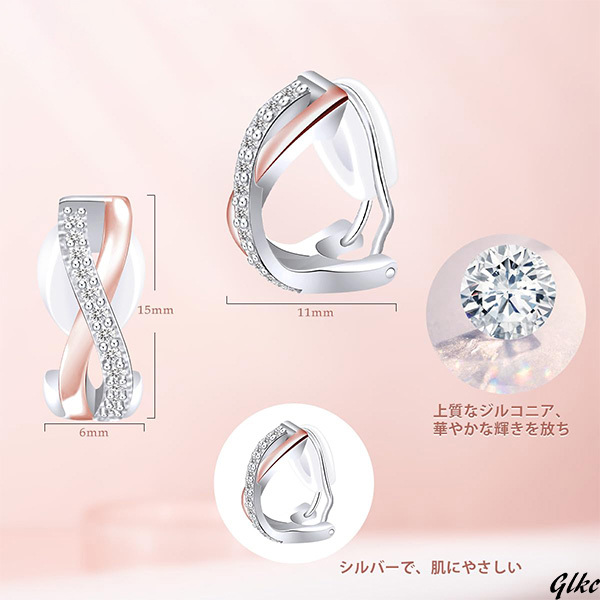 【クラシックで柔らかなクロスデザインが女性らしさを演出】 ノンホールピアス イヤリング ジルコニア アレルギー対応 ピンクゴールド