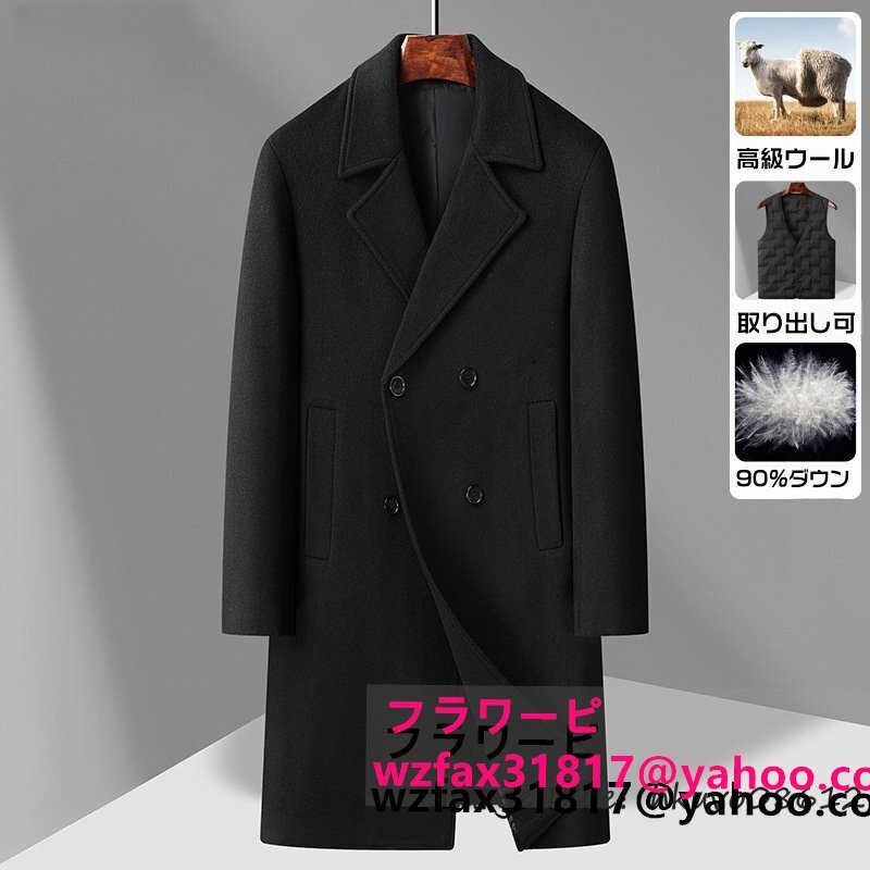 秋冬の最新モデル* 秋冬 防寒 ダウンジャケット ウールコート ビジネスコート 厚手 ロングコート ブラック 3XL