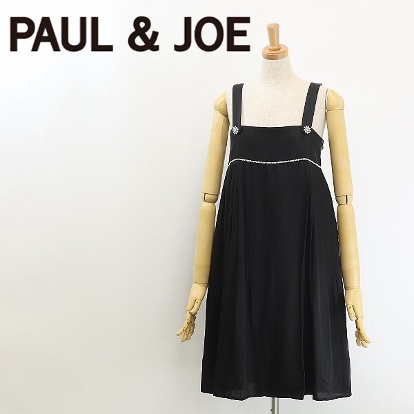 ◆PAUL&JOE ポール&ジョー シルク混 ビジュー ラインストーン装飾 タック ジャンパー スカート 黒 ブラック 36 | |