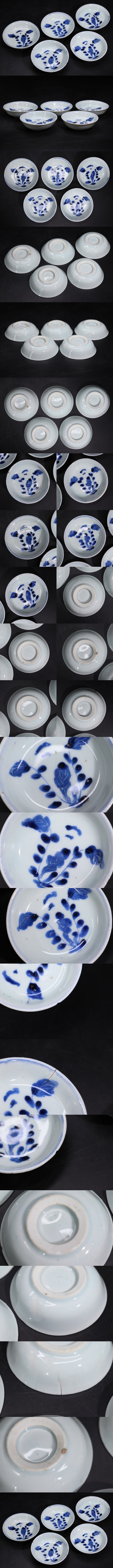 | 時代 染付 なずな 薺文 豆皿 五客 / 中国美術 清 新渡 小皿 銘々皿 茶器 煎茶道具 煎茶飾 .G1620 |