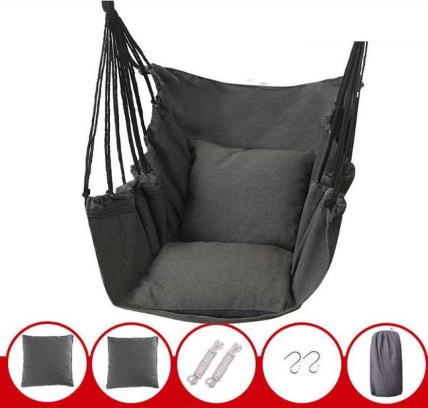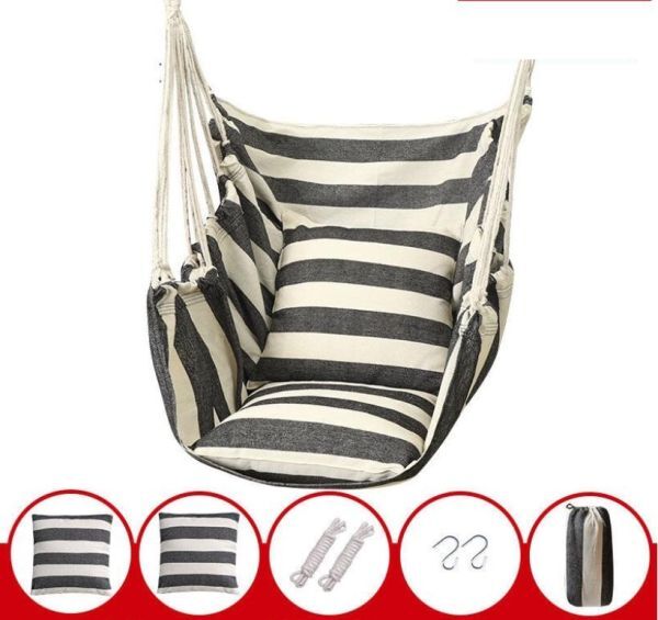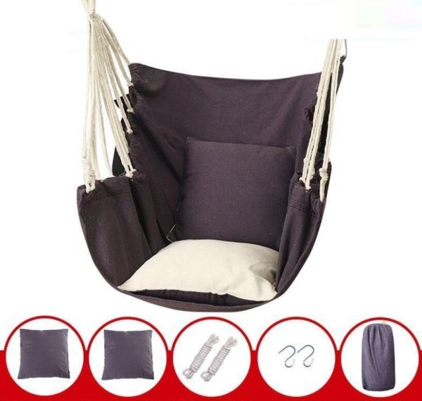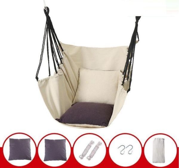 人気推薦 / 寝具 ハンモックチェア 吊り下げ ハンギングチェア ハンモック チェア 室内 屋外 キャンプ 折りたたみ クッション付き/ベージュ