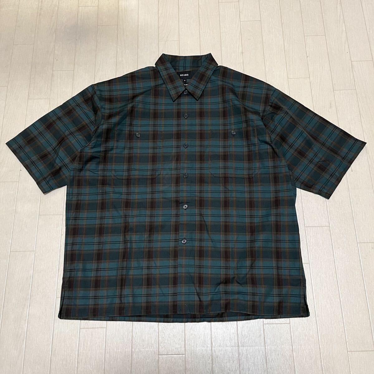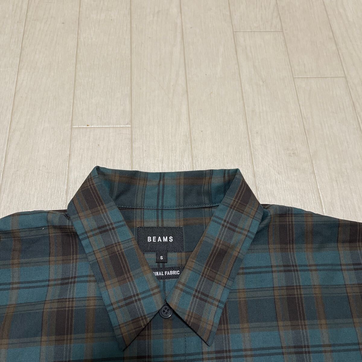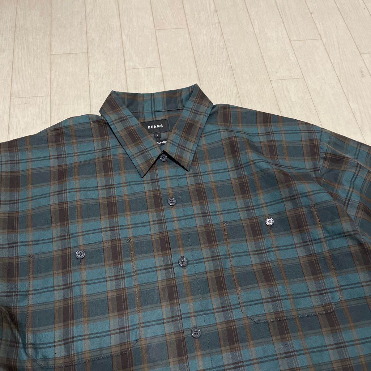 和747★ BEAMS ビームス ツイル ワーク チェックイージーシャツ ボタンシャツ S グリーン ブラウン メンズ
