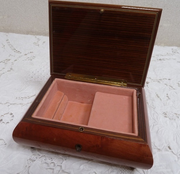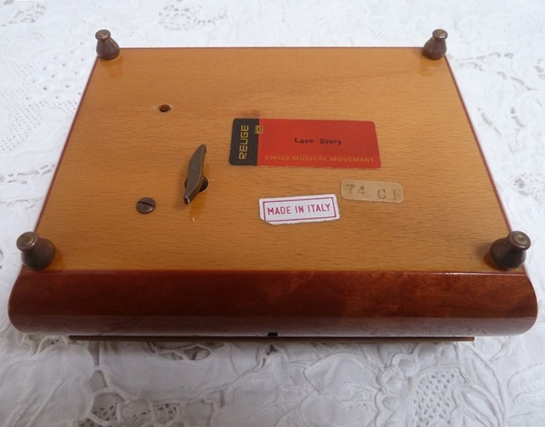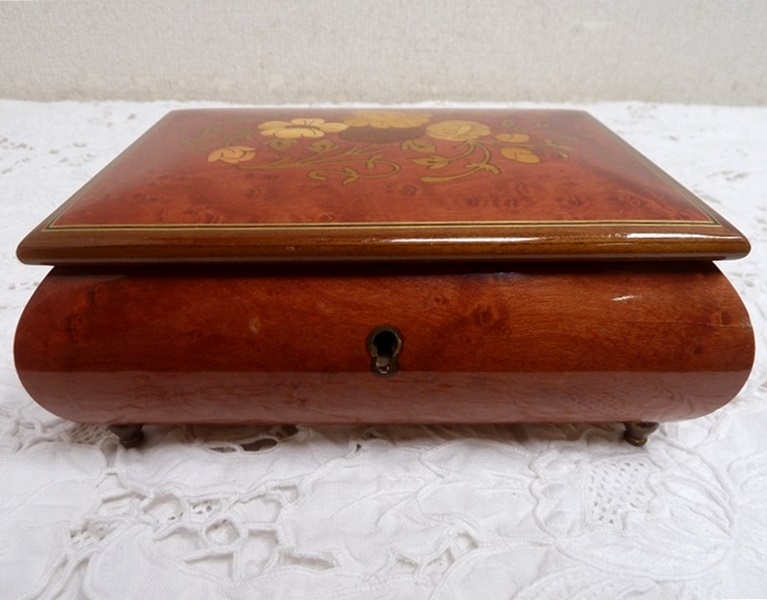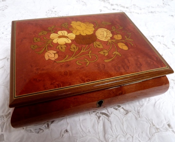 (☆BM)イタリア製 REUGE/LoveStory リュージュ ラブストーリー オルゴール 象嵌細工 木製 ITALY ジュエリーボックス ケース 宝石箱