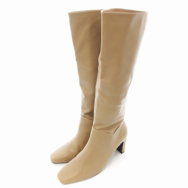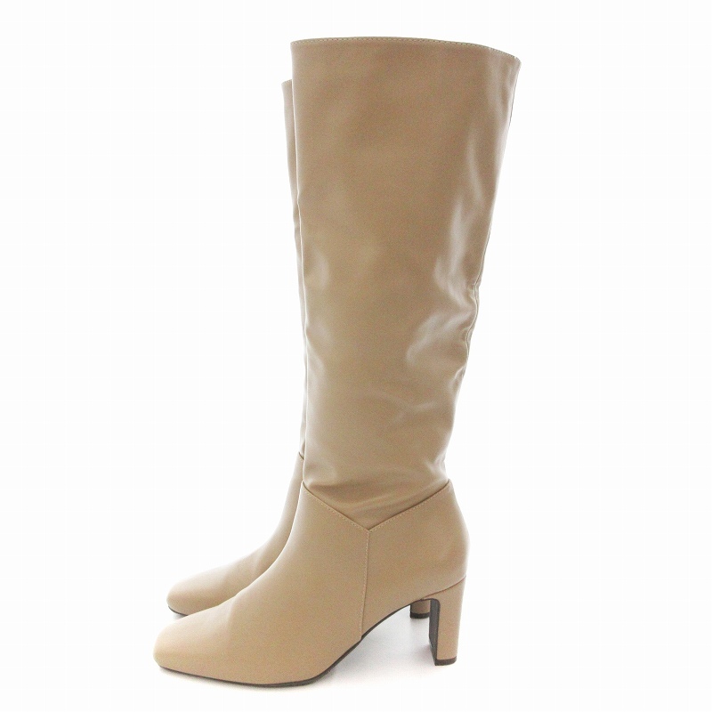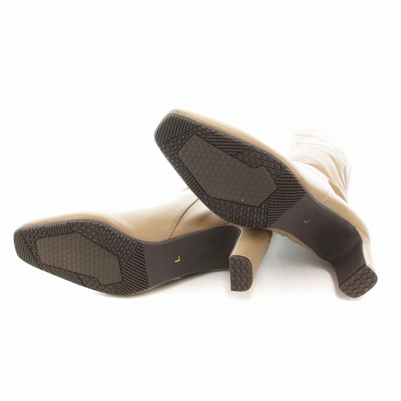 ランダ RANDA 晴雨兼用 平ヒールロングブーツ スクエアトゥ L グレージュ /UO レディース