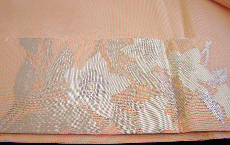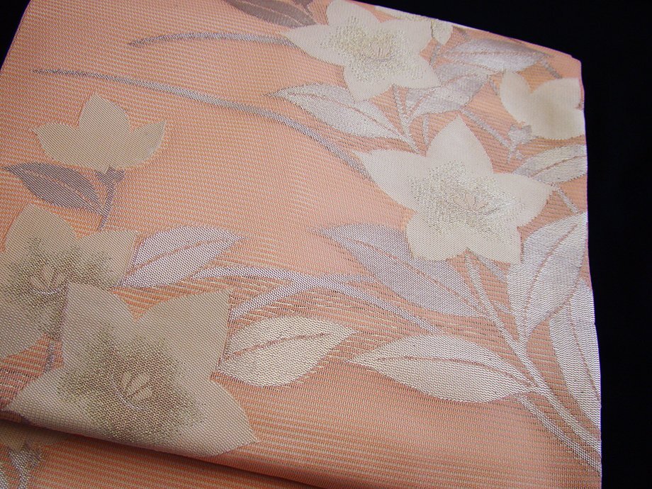 | 商品説明 | とてもしなやかなさらっとした手触り良い扱い易く〆易い「絽」の西陣織のなごや帯。 虹色地に銀糸、象牙色の花草柄の織柄。 たいこ柄。 |