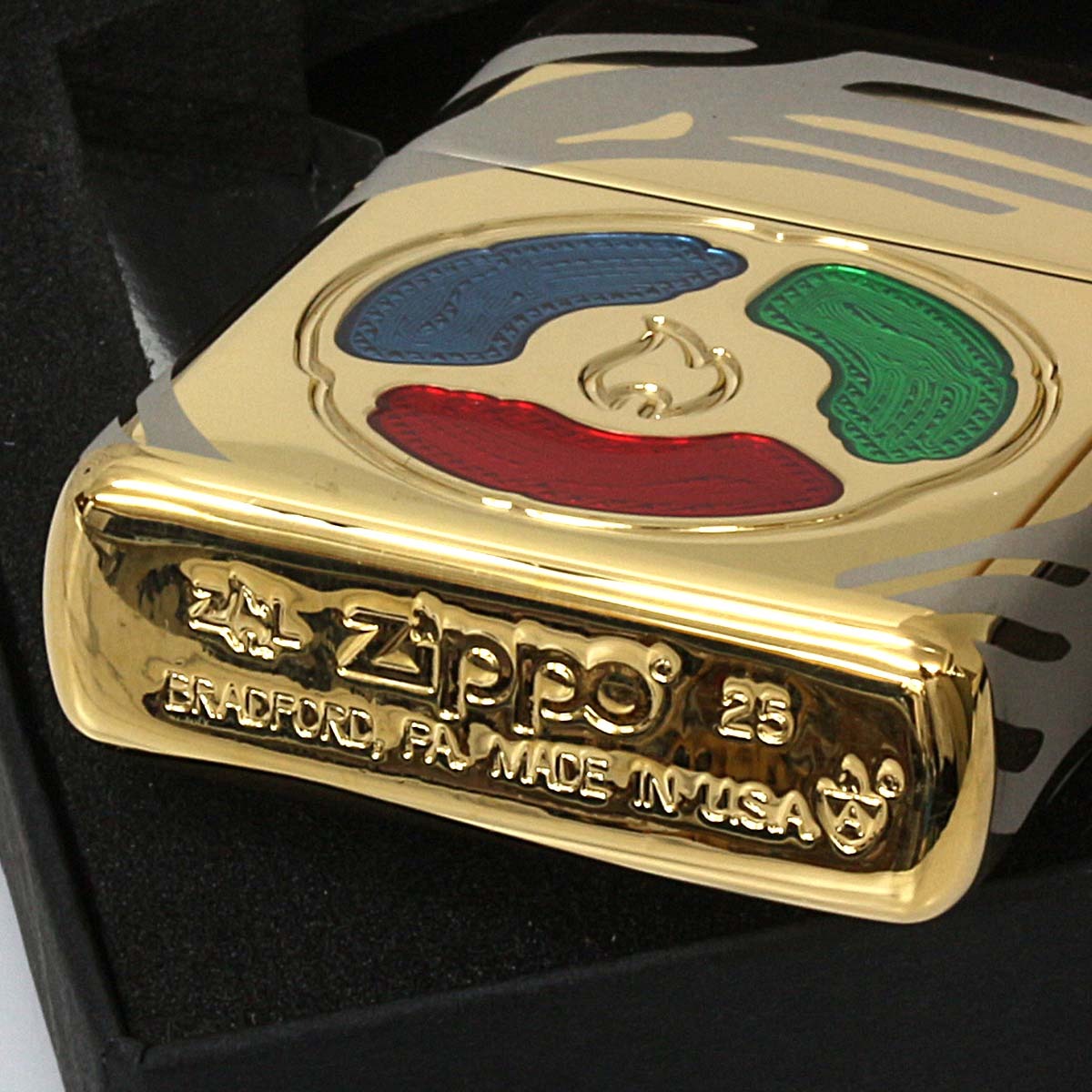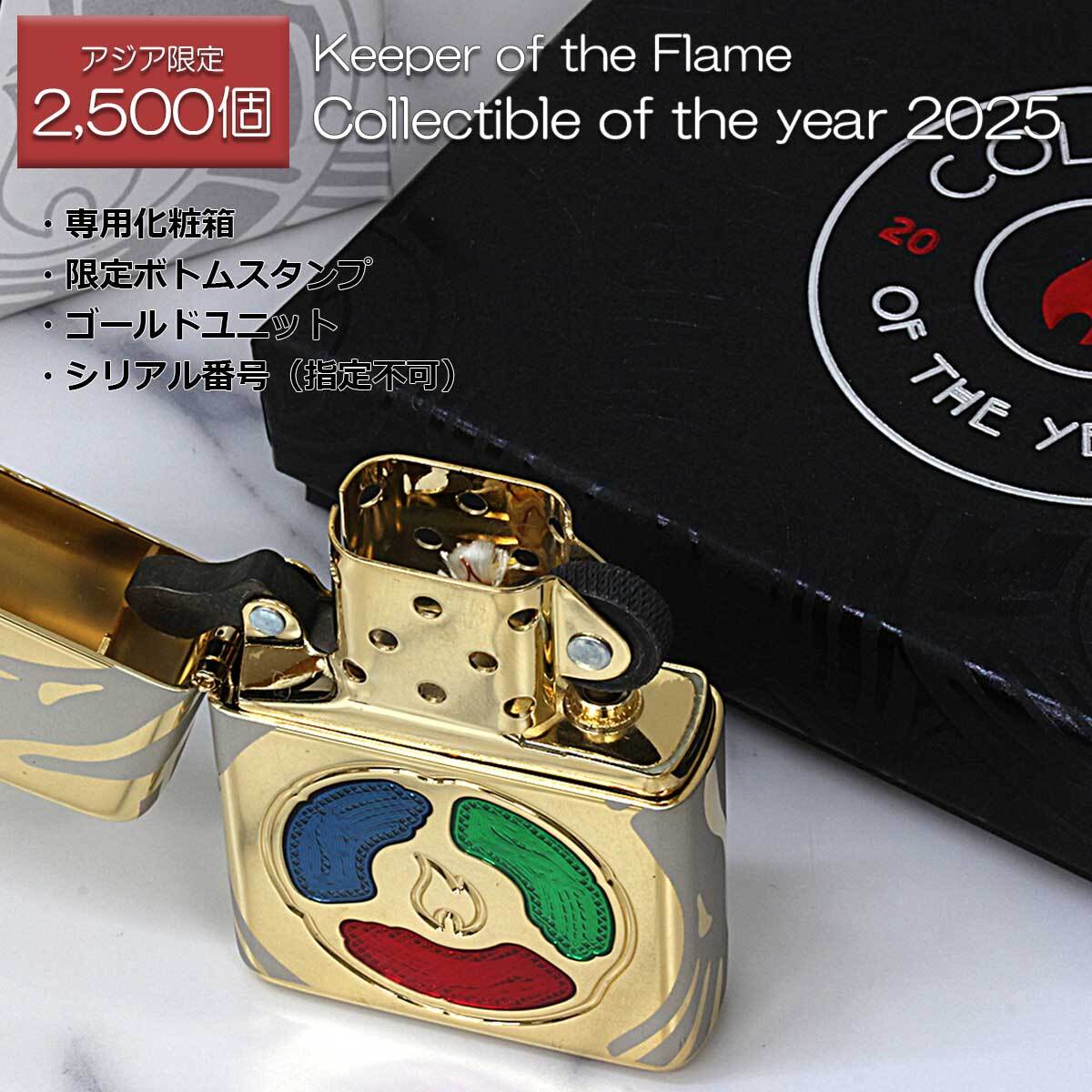 25年前、ZIPPO社は新世紀の到来を記念して「キーパー・オブ・ザ・フレイム(炎の番人)」をリリースしました。今年、ZIPPOは、新たな技術のもとでコンセプトを再解釈してリリースします。ZIPPOのフレイムロゴを囲む三色のエポキシインレイは、赤(火・ぬくもり・力・エネルギー)、青(平和・精神・知性・インスピレーション)、緑(自然・成長・バランス)を意味しています。