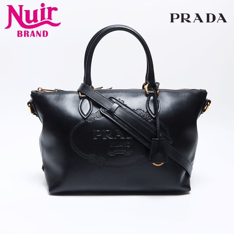 プラダ PRADA ショルダーバッグ ロゴ 型押し レザー 2way ブラック