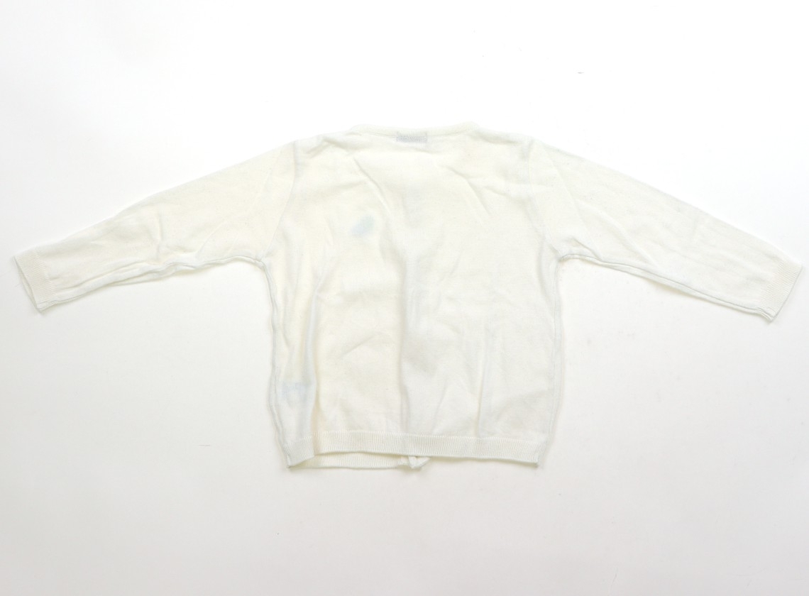 コットン・アクリル素材のニット地。実際のサイズ表記は、80-90。毛羽立ち・洗いざらし感があります。