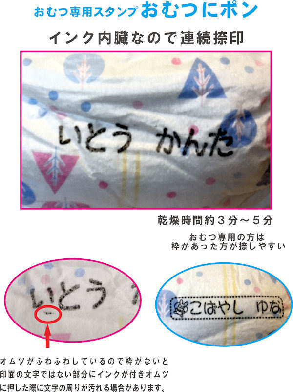 おむつスタンプ 連続捺印 シャチハタ式 お名前スタンプ どこでもスタンプ