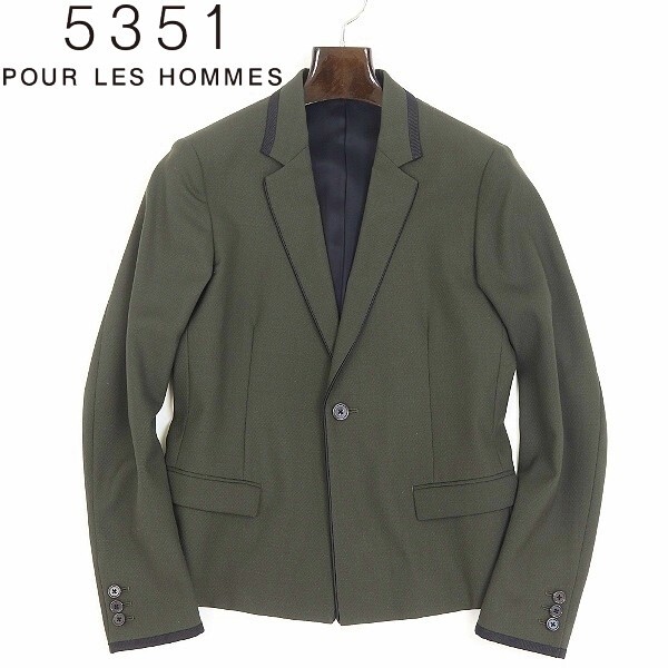 | 美品◆5351 POUR LES HOMMES 5351 プール オム 1釦 ジャケット ダークモスグリーン×ブラック 1 | |