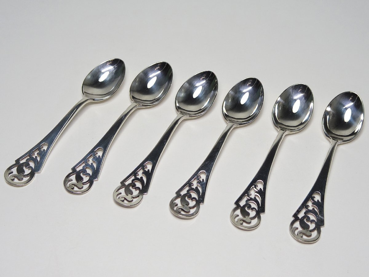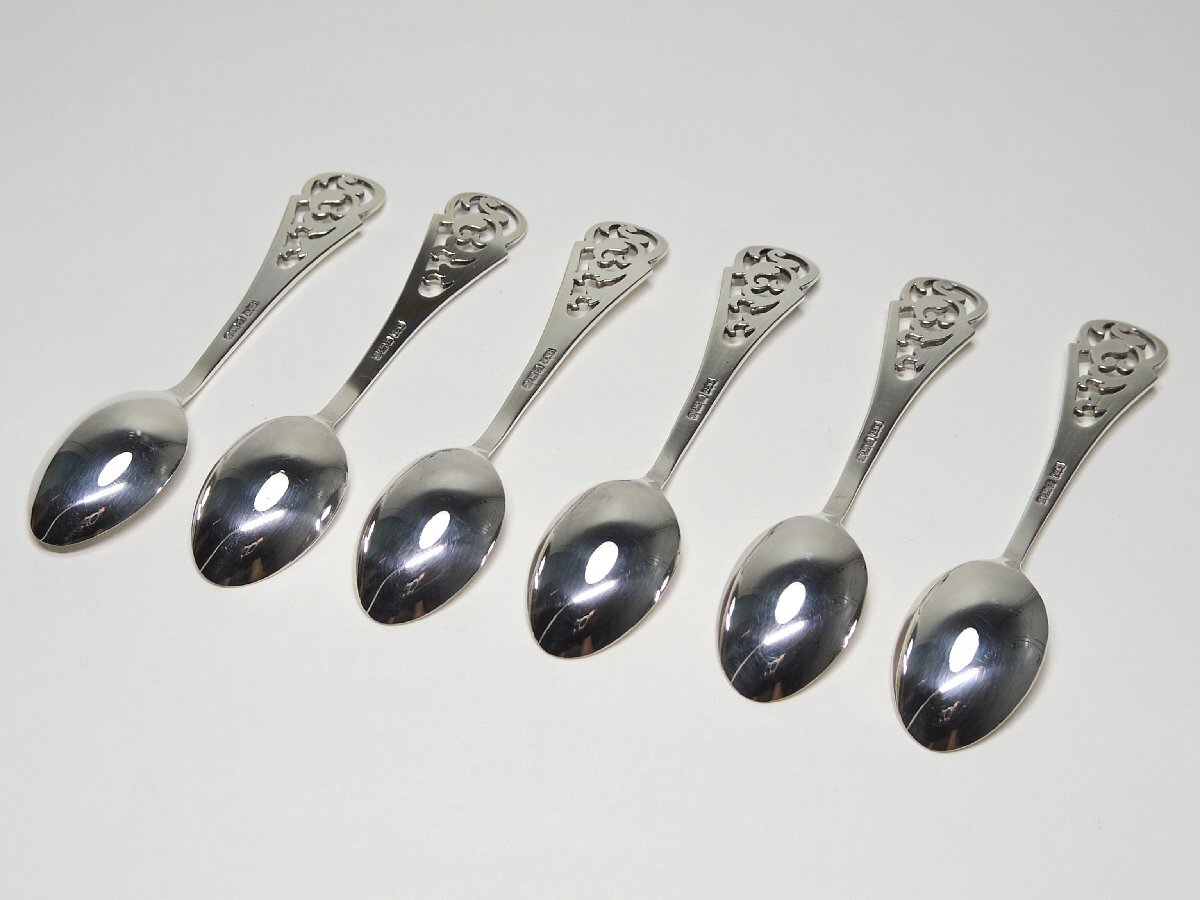 MAPPIN&WEBB マッピン&ウェッブ 英国 シェフィールド 1989年 純銀製 透かし彫りデミタススプーン 6Pセット オリジナルBOX付◇28-S15