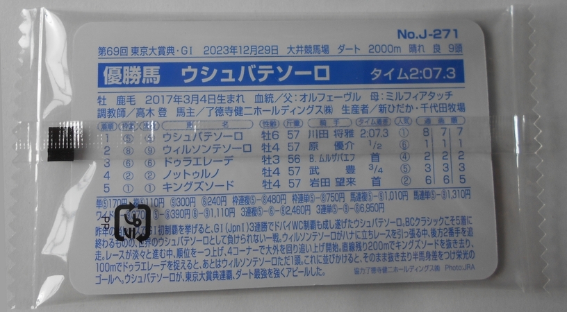 ◎まねき馬カード No.J‐271 ウシュバテソーロ(未開封)