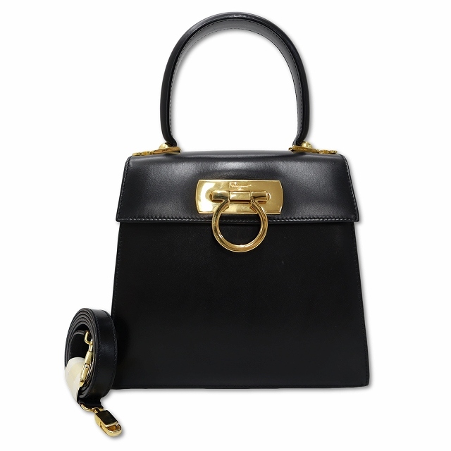 サルヴァトーレフェラガモ Salvatore Ferragamo AQ212193 レザー ガンチーニ 2way ショルダー トップハンドル バッグ BLACK(ブラック)