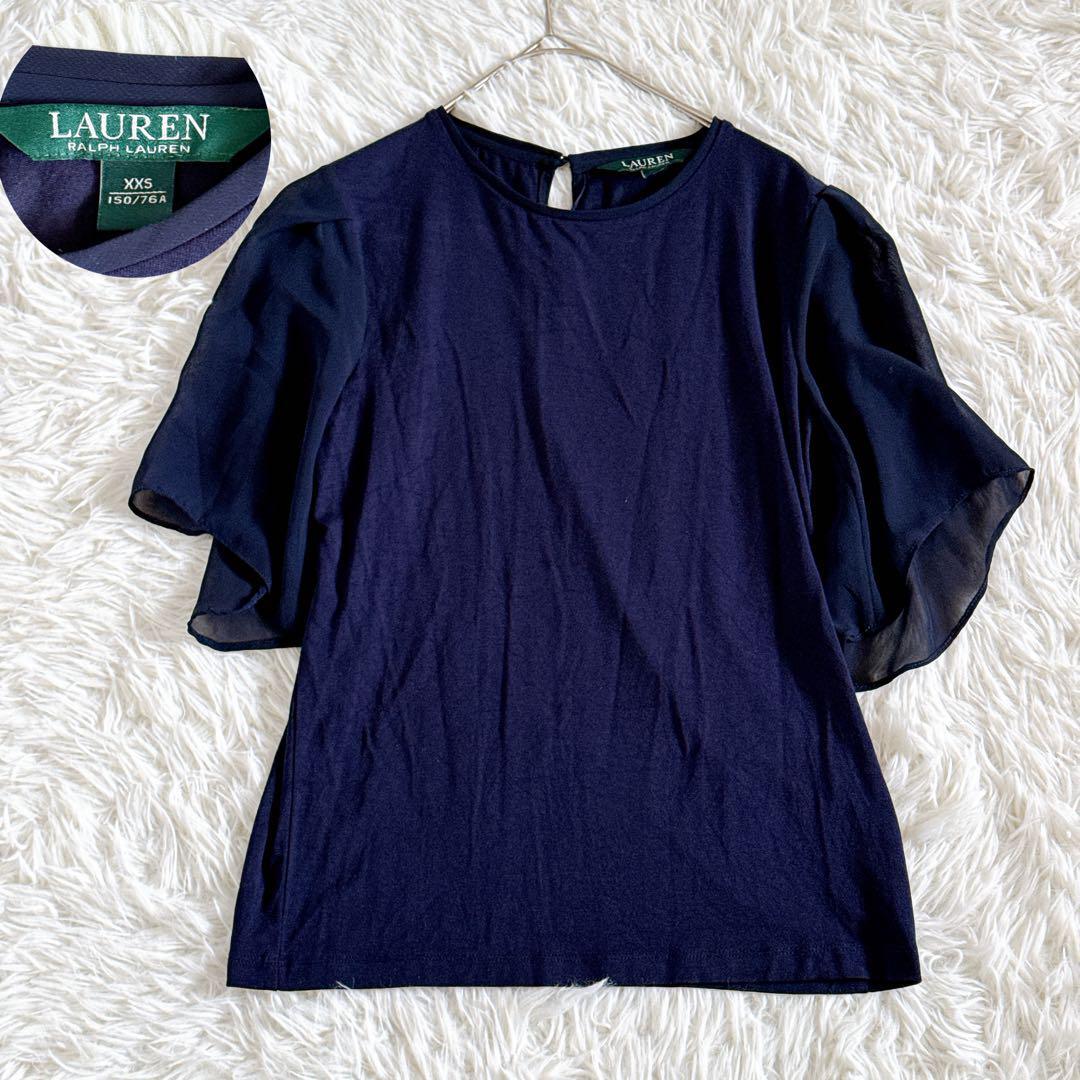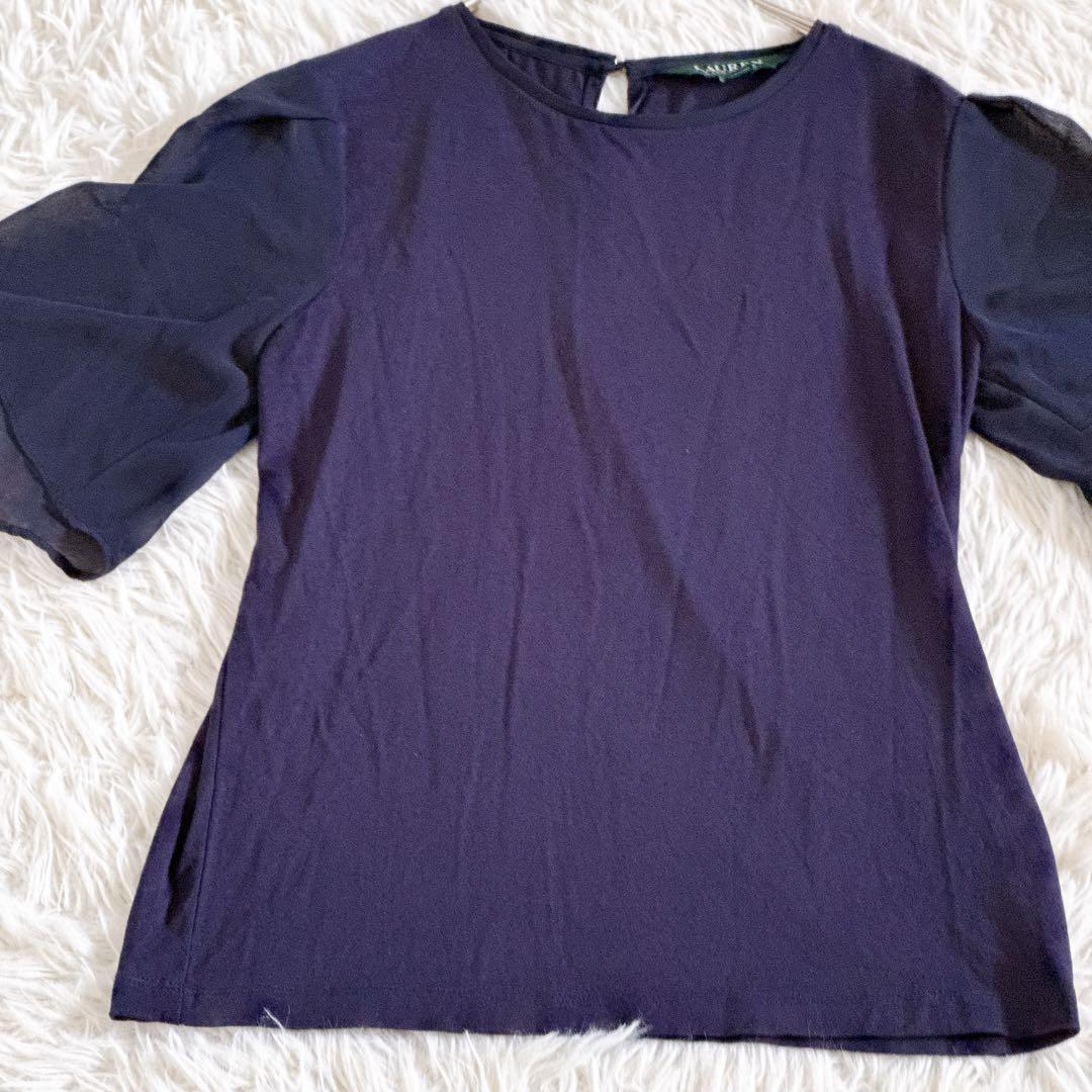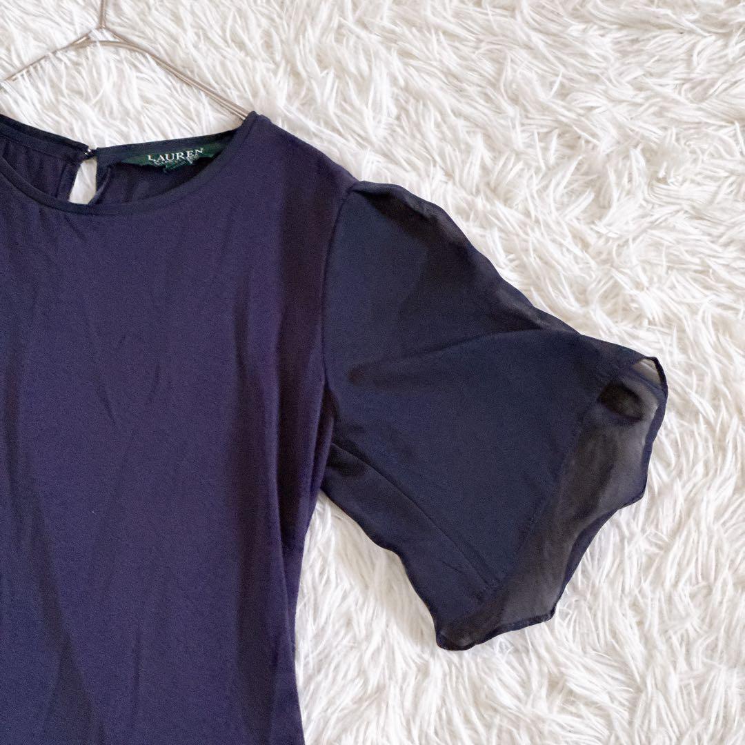 ローレンラルフローレン RALPHLAUREN ブラウス シアースリーブ 半袖トップス カットソー シフォン袖 ロゴボタン レディース ネイビー 紺 フォーマル オフィスカジュアル 通勤 涼しげ